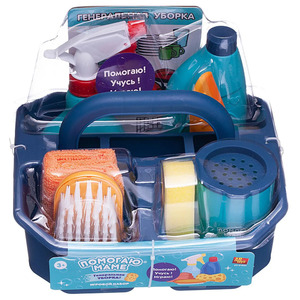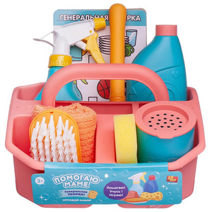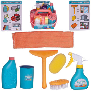 В состав набора входят: органайзер для моющих средств - 1шт., пузырек с «моющим средством» (муляж) - 1 шт., щетка - 1 шт., водосгон - 1 шт., чистящий порошок (муляж) - 1шт., губка - 1 шт., «моющее средство» с пульверизатором (муляж) - 1 шт., тряпка - 1шт., график уборки - 2 шт.