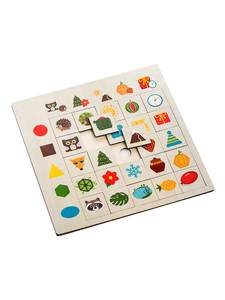 Игра представляет собой деревянную панель, с нанесенными на нее изображениями. Чтобы получить целостный ряд, необходимо правильно подобрать таблички к каждой картинке. Вначале нужно показать ребенку, как играть с этой игрушкой. Для этого выньте таблички и подберите сами ассоциации к одной из картинок. Чтобы тренировать память, можно расставить ассоциативные таблички в определенном порядке и предложить ребенку его запомнить. Когда он отвернется, перемешайте таблички или выньте из панели и попросите ребенка расставить все так, как он запомнил.