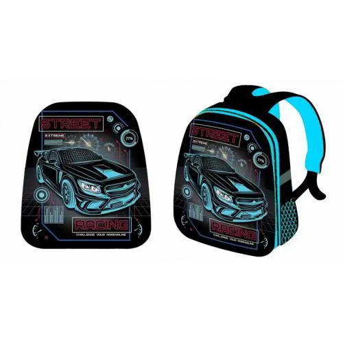 Рюкзак каркасный "Машина 1" формованный из полимеров, материал: нейлон, полиэстер, полноцветная печать, 2 отделения на молнии, 2 бегунка на каждой молнии, 2 боковых кармана, светоотражатели , жесткая эргономичная спинка; широкие, регулируемые по длине лямки; удобная широкая ручка для переноски; укрепленная пластиком петля для подвеса; органайзер в переднем отделении - 2 кармашка для мелочей и большой сетчатый карман; размер 37*31,5*17см.