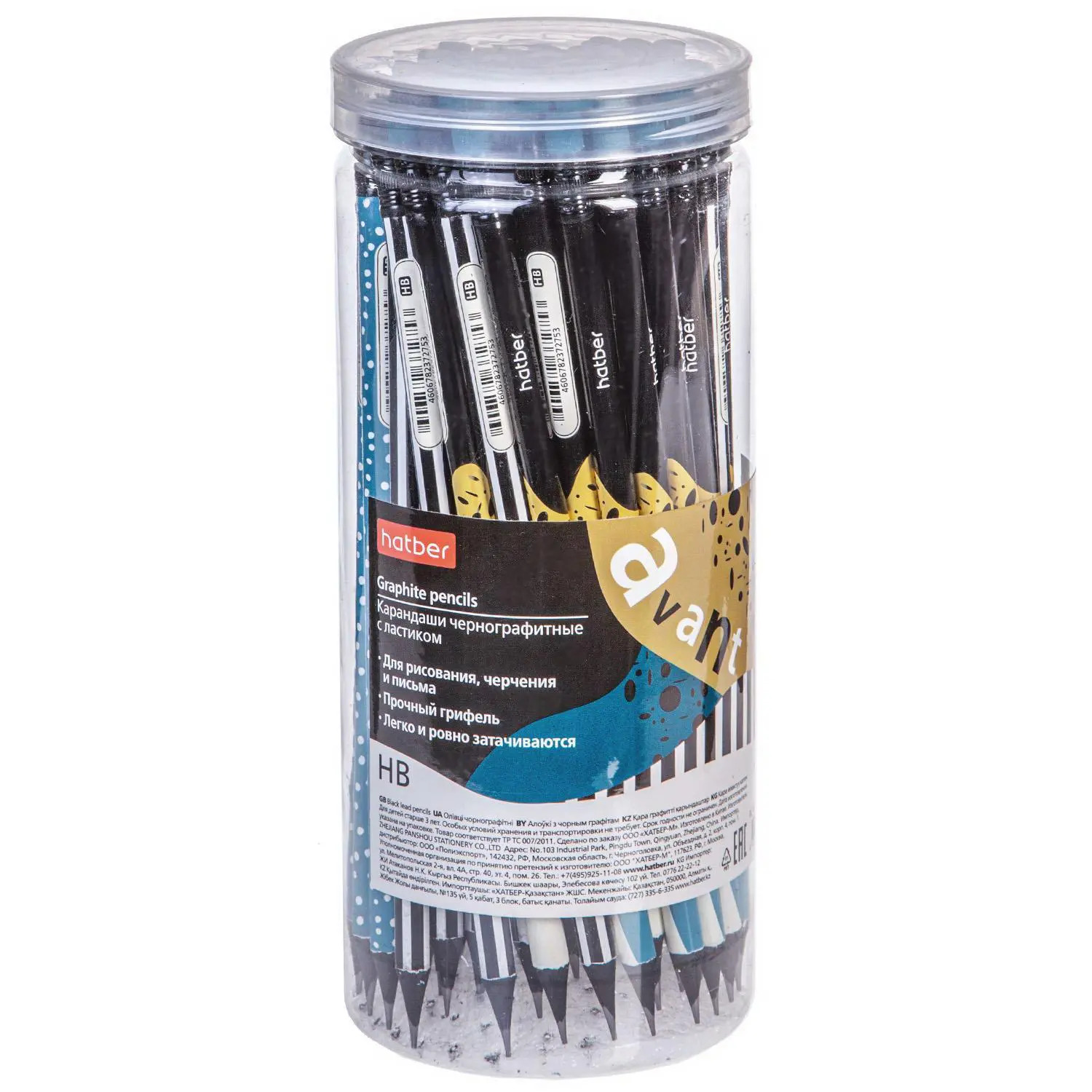 Карандаш чернографитный Hatber Avant круглый корпус 72шт. серия "HB" с ластиком с заточкой в пластиковой тубе