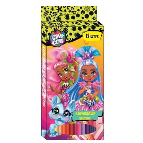 Карандаши цветные пластиковые 12 цветов "Cave Club", шестигранные, длина 177 мм.