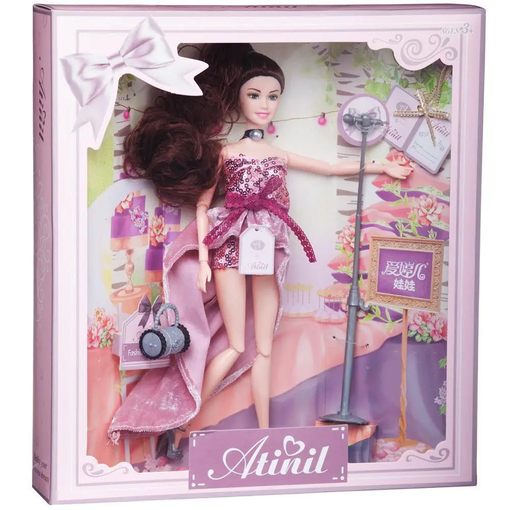 Кукла Junfa Atinil (Атинил) Звезда эстрады (в коротком платье с пайетками и шлейфом) в наборе с аксессуарами 28см