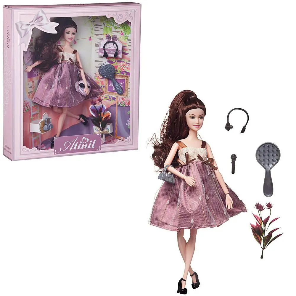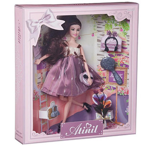 Кукла Atinil выглядит как красивая молодая девушка, которая разбирается в новинках моды и любит следить за собой. Ребенок, играя с такой куклой, сможет придумать множество различных сюжетов. Также в наборе имеются модные аксессуары. У куклы подвижны части тела, благодаря чему в процессе игры девочка сможет менять положение игрушки.Материалы: полимерные материалы, текстиль.