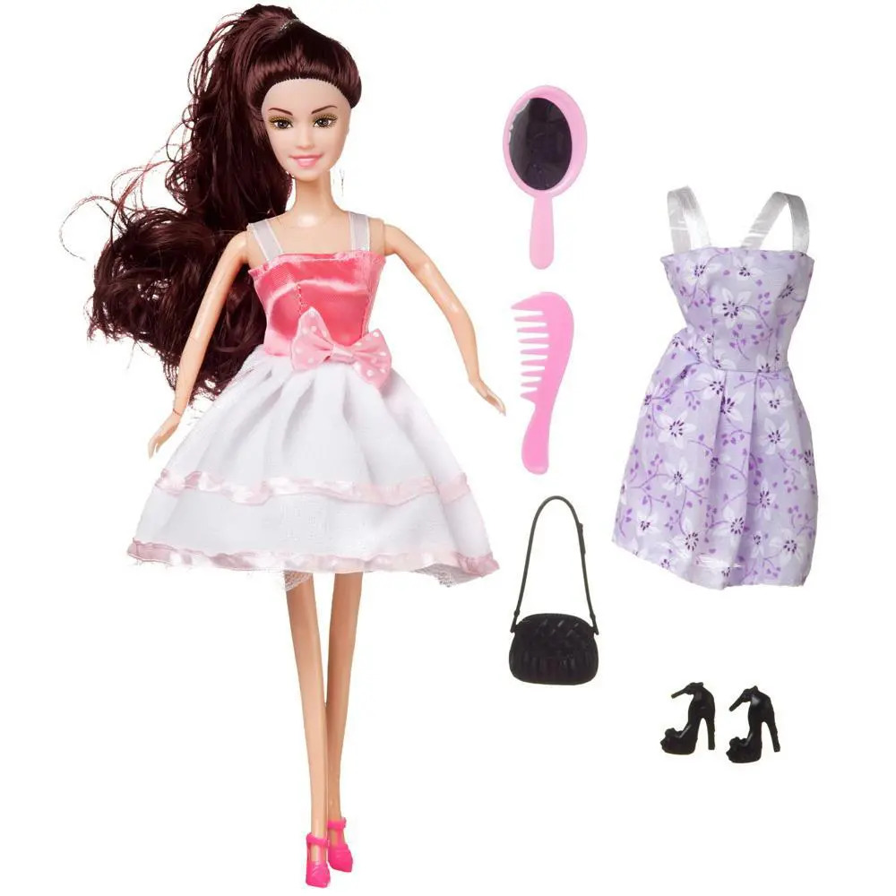 Кукла Junfa Atinil (Атинил) Гардероб модницы Летнее настроение (в коротком платье с розовым верхом) в наборе с доп.платьем и аксессуарами 28см