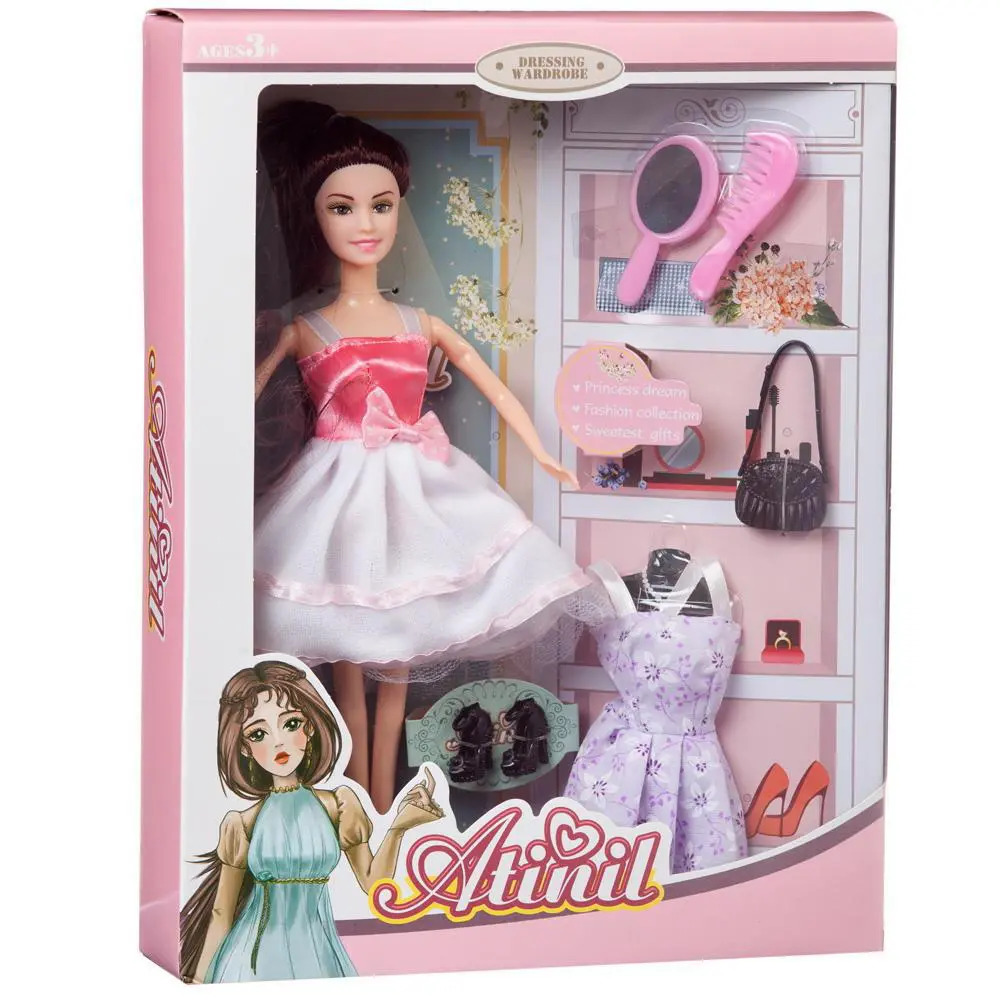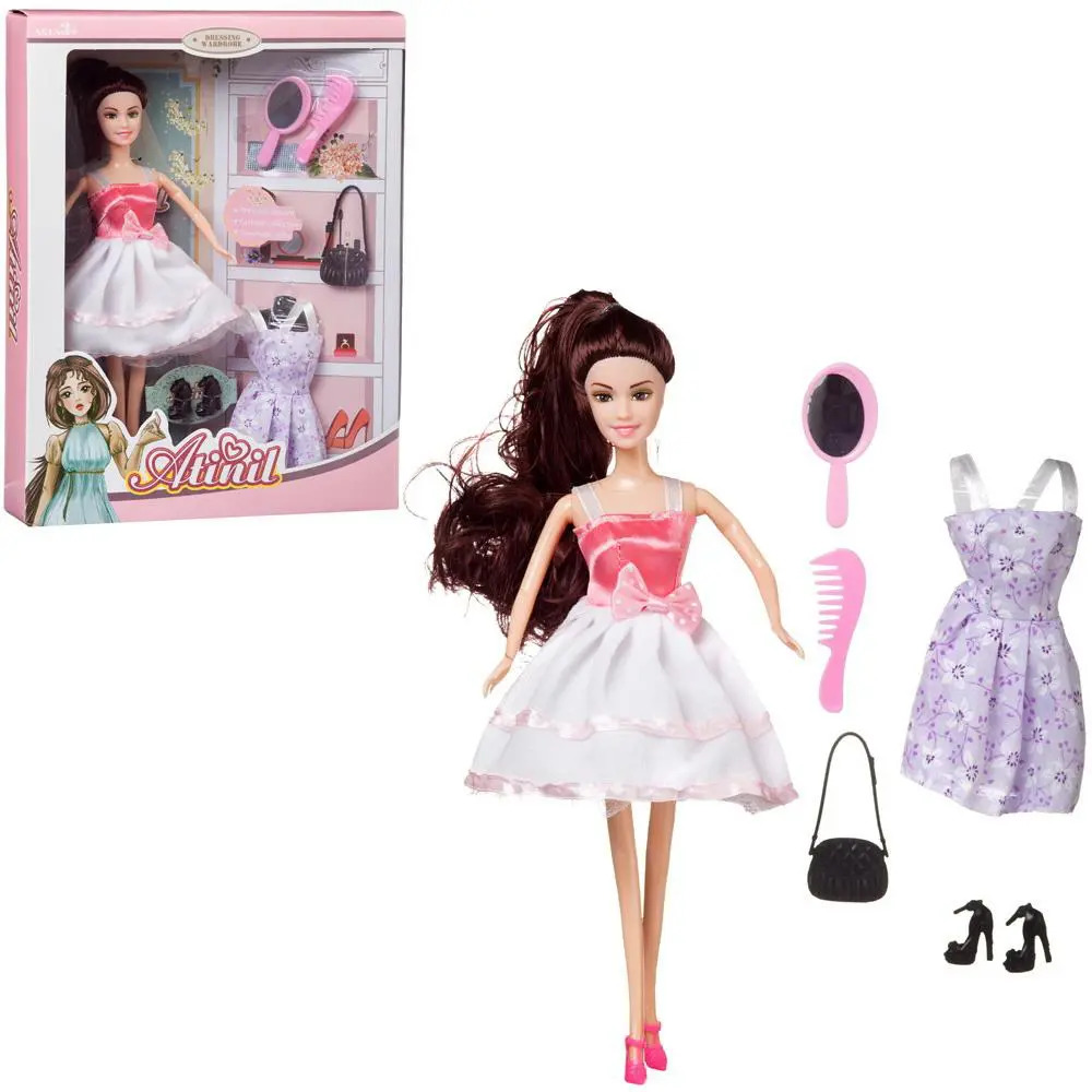 Кукла Atinil выглядит как красивая молодая девушка, которая разбирается в новинках моды и любит следить за собой. Ребенок, играя с такой куклой, сможет придумать множество различных сюжетов. Также в наборе имеются модные аксессуары. У куклы подвижны части тела, благодаря чему в процессе игры девочка сможет менять положение игрушки. А в ее гардеробной есть еще 2 красивых платья и многочисленные аксессуары.Материалы: полимерные материалы, текстиль.