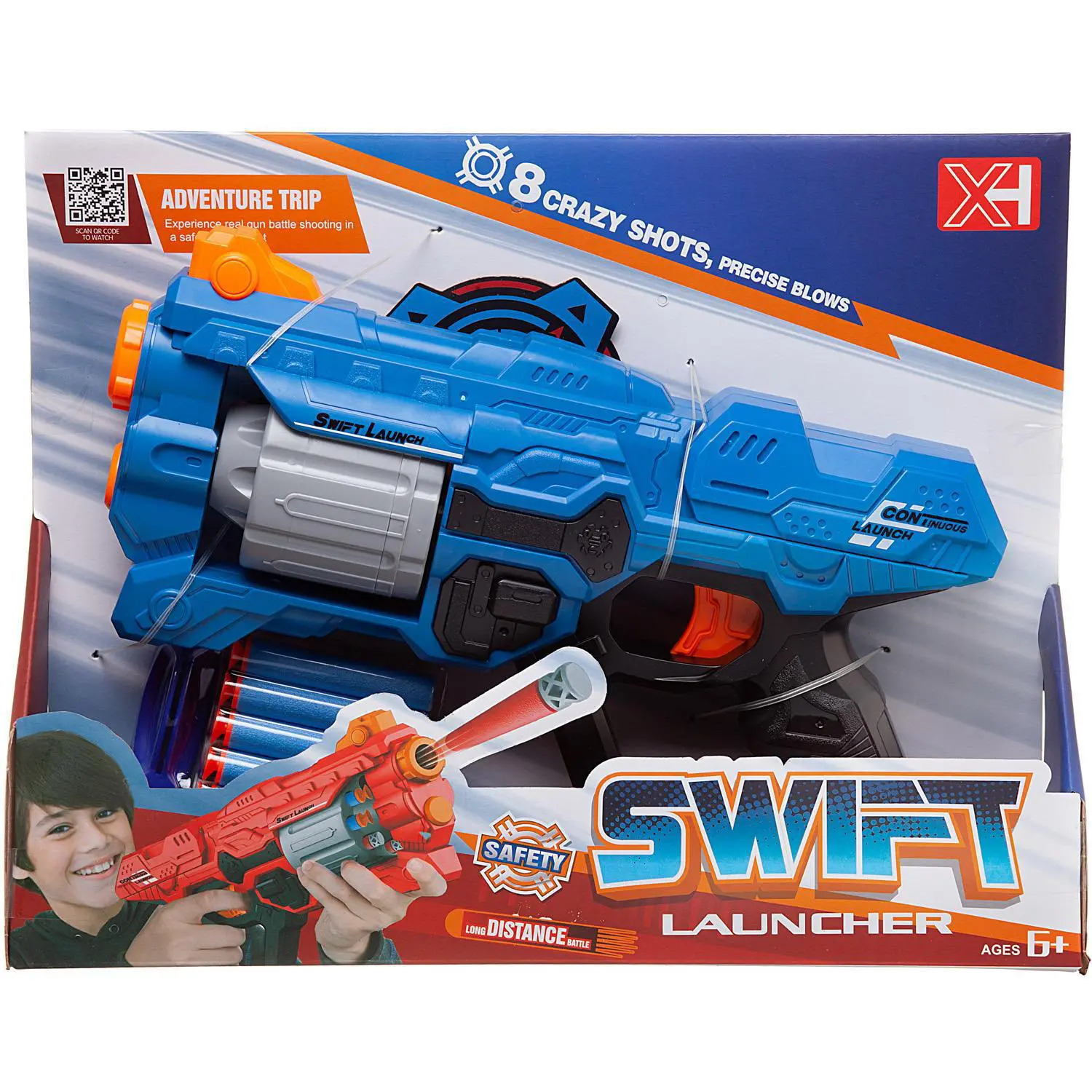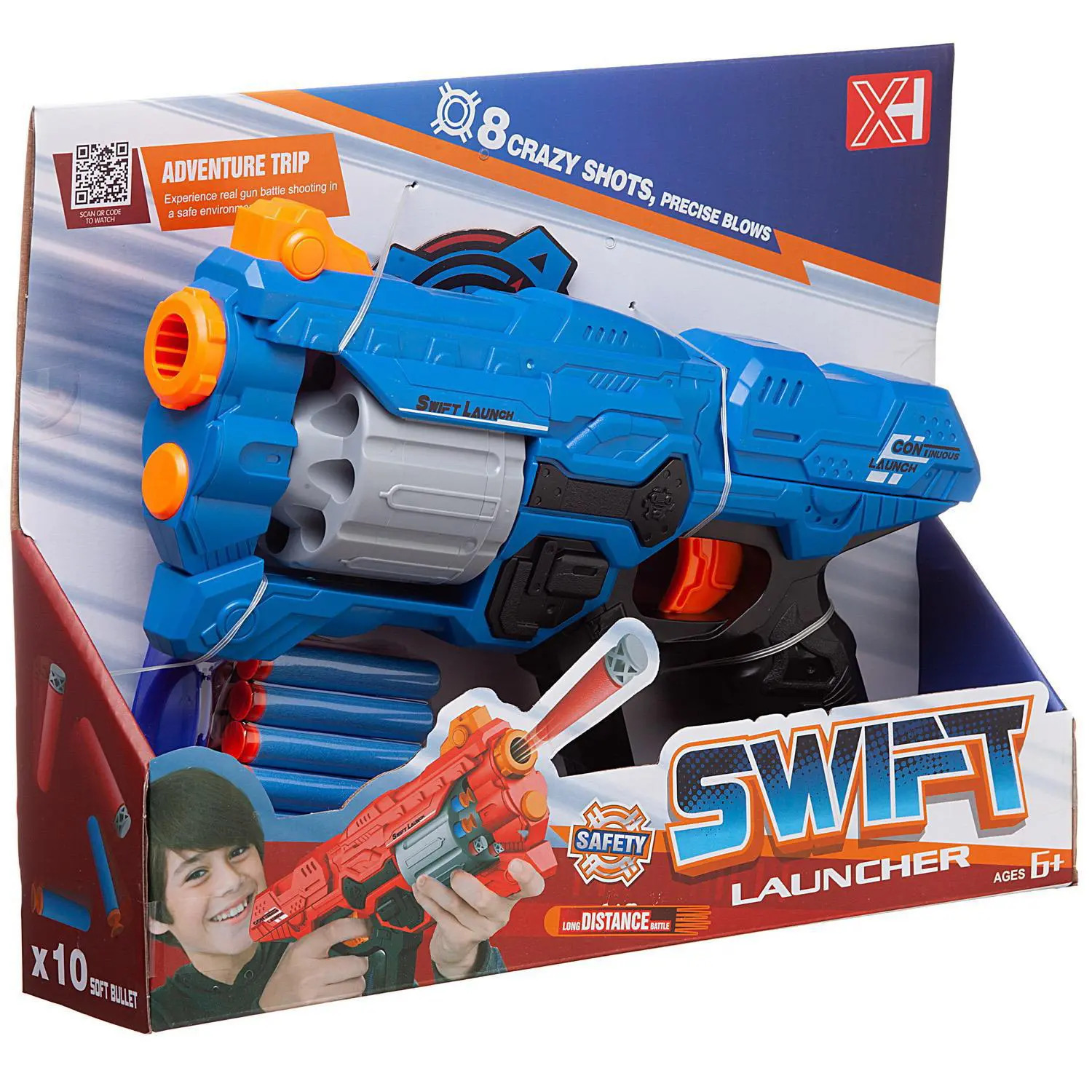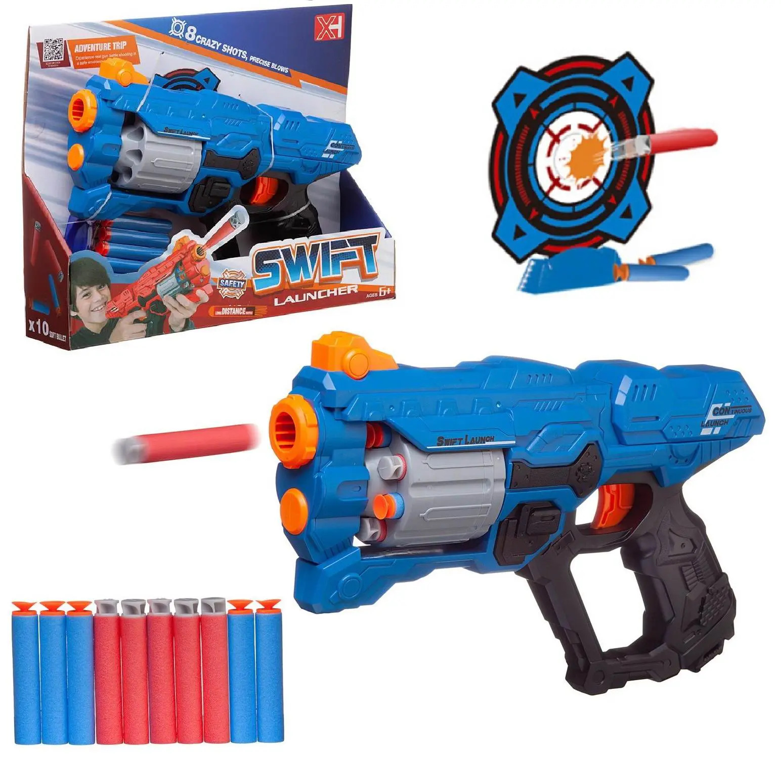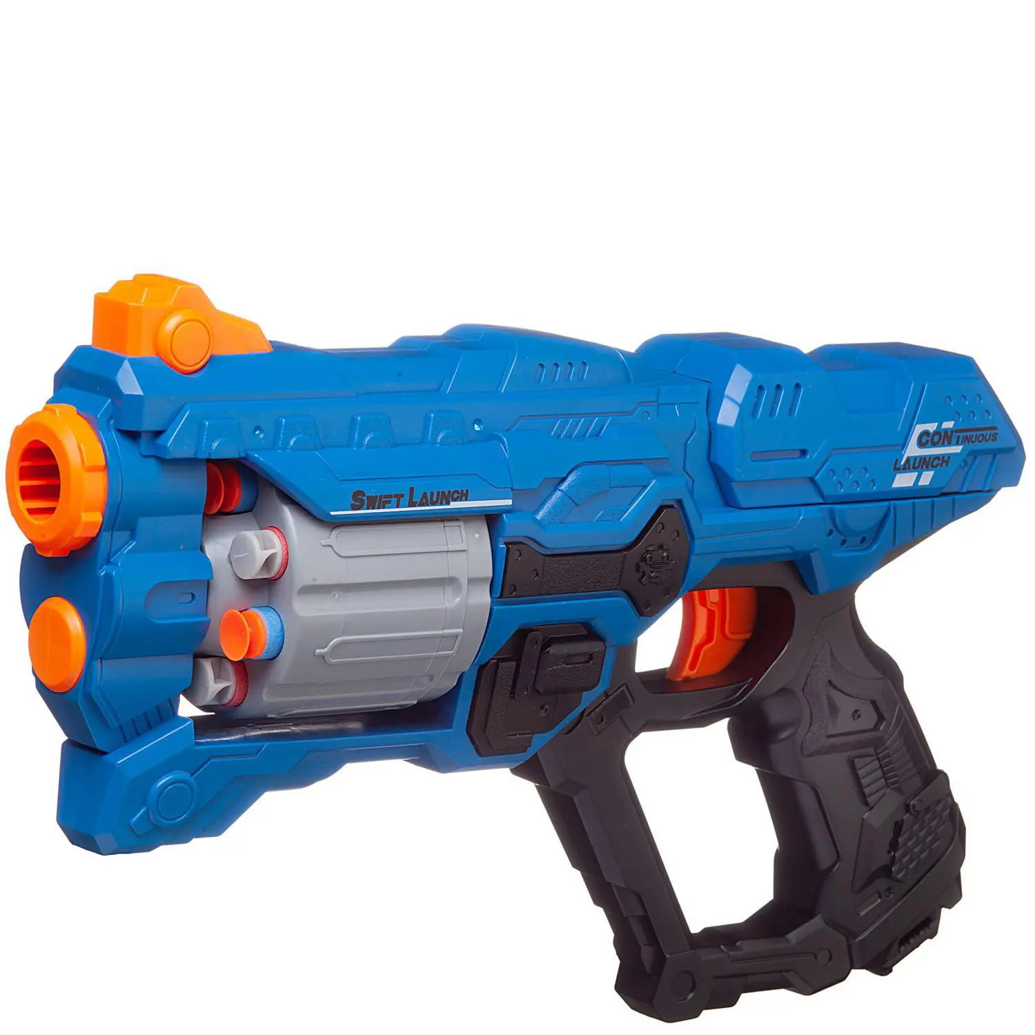 Игровой набор Junfa бластер космический с барабаном, 10 мягких пуль, мишень синий