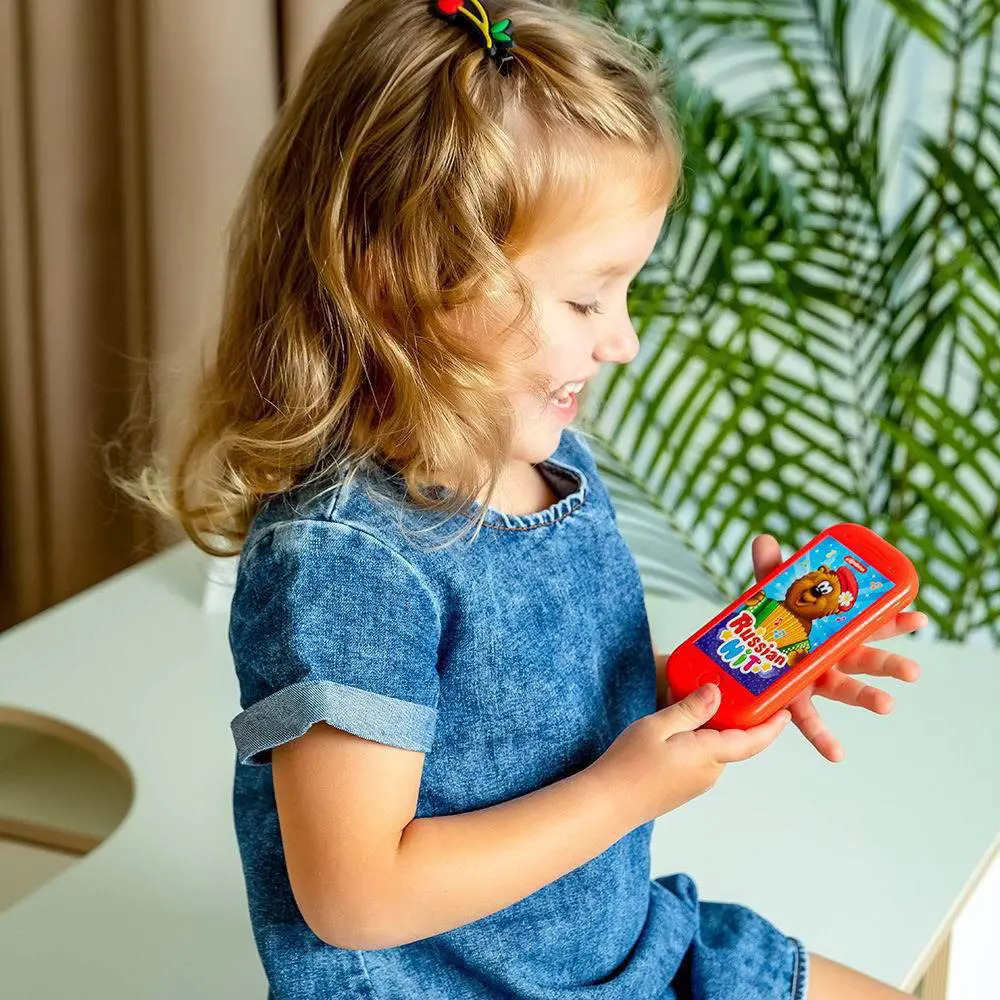 Современный мини-смартфончик для современных малышей! Игрушка идеально подойдет для маленьких ручек благодаря небольшому размеру и закруглённым уголкам. Малыш сможет подружиться с милым мишуткой и послушать детские хиты в русском народном стиле («Медвежонок – лучший друг», «Топ-топ-топ», «Калинка», «Два весёлых гуся», «Антошка» и др.). На яркую кнопочку захочется нажимать снова и снова!