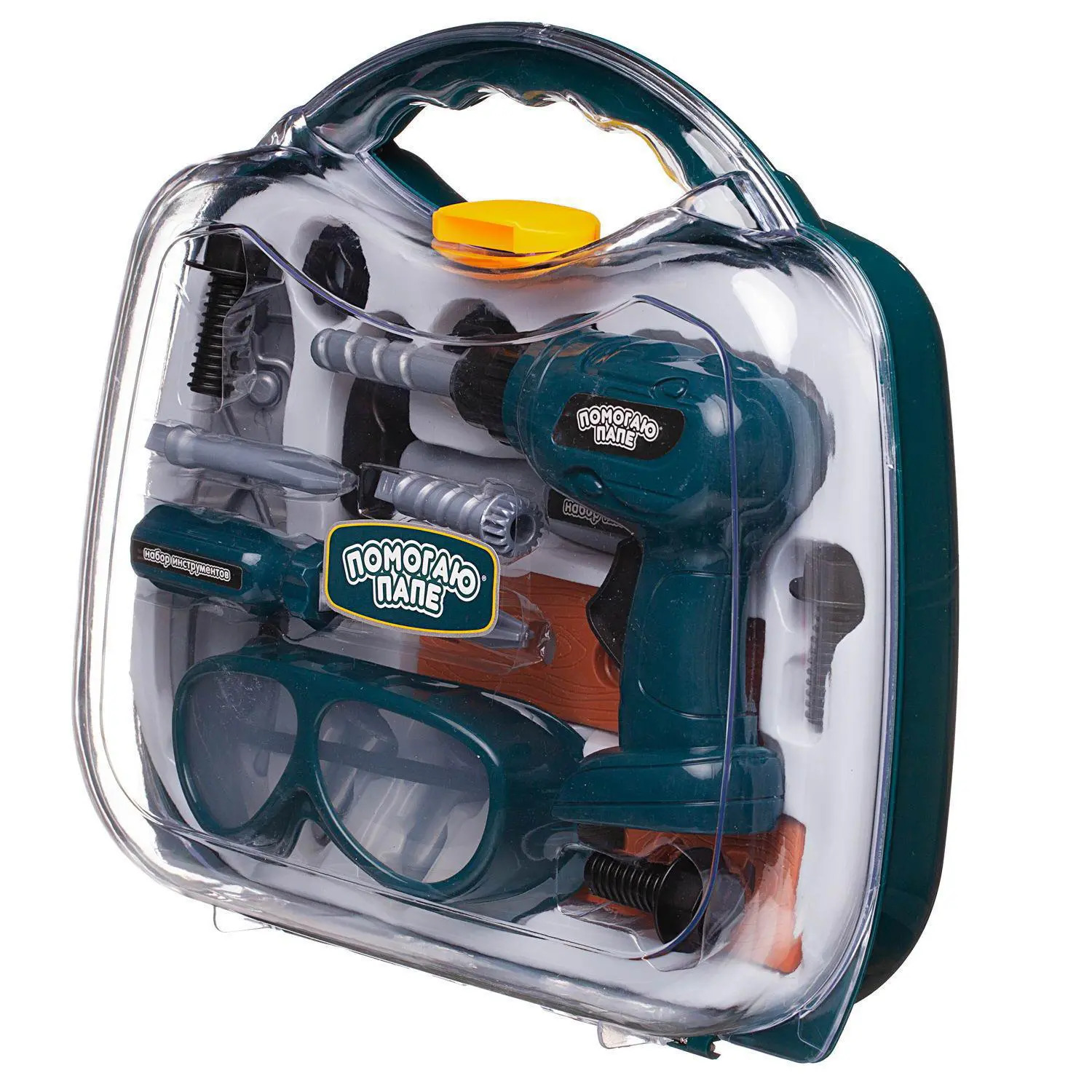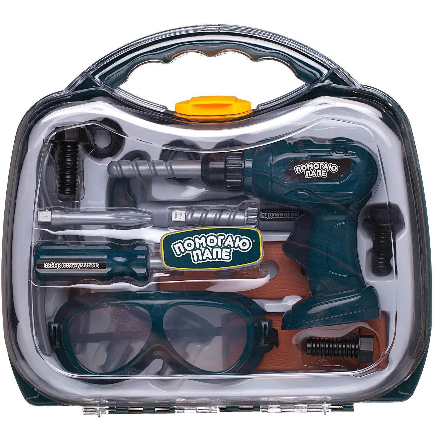 Набор инструментов "Помогаю Папе" от бренда ABtoys содержит все необходимые инструменты, чтобы починить любую поломку и стать мастером на все руки! Все предметы набора сделаны из пластика и безопасны для игры. При этом, их внешний вид в точности повторяет внешний вид настоящих инструментов, так что на примере игрушек можно объяснить ребенку зачем нужен каждый инструмент и дать понять, как им пользоваться.Комплектность: чемоданчик – 1 шт., дрель – 1 шт., сменные насадки – 3 шт., молоток-гвоздодёр – 1 шт., очки защитные – 1 шт., отвёртка – 1 шт., крепёж – 2 шт., пассатижи – 1 шт., болт – 3 шт., шайба – 2 шт., гвоздь – 2 шт.