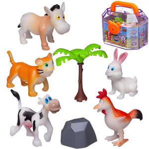 Комплект 1: кролик, кошка, петух, ослик, корова.