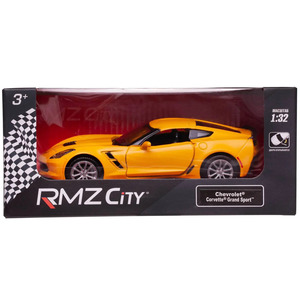 Машина металлическая RMZ City серия 1:32 Chevrolet Corvette Grand Sport, желтый матовый цвет, двери открываются