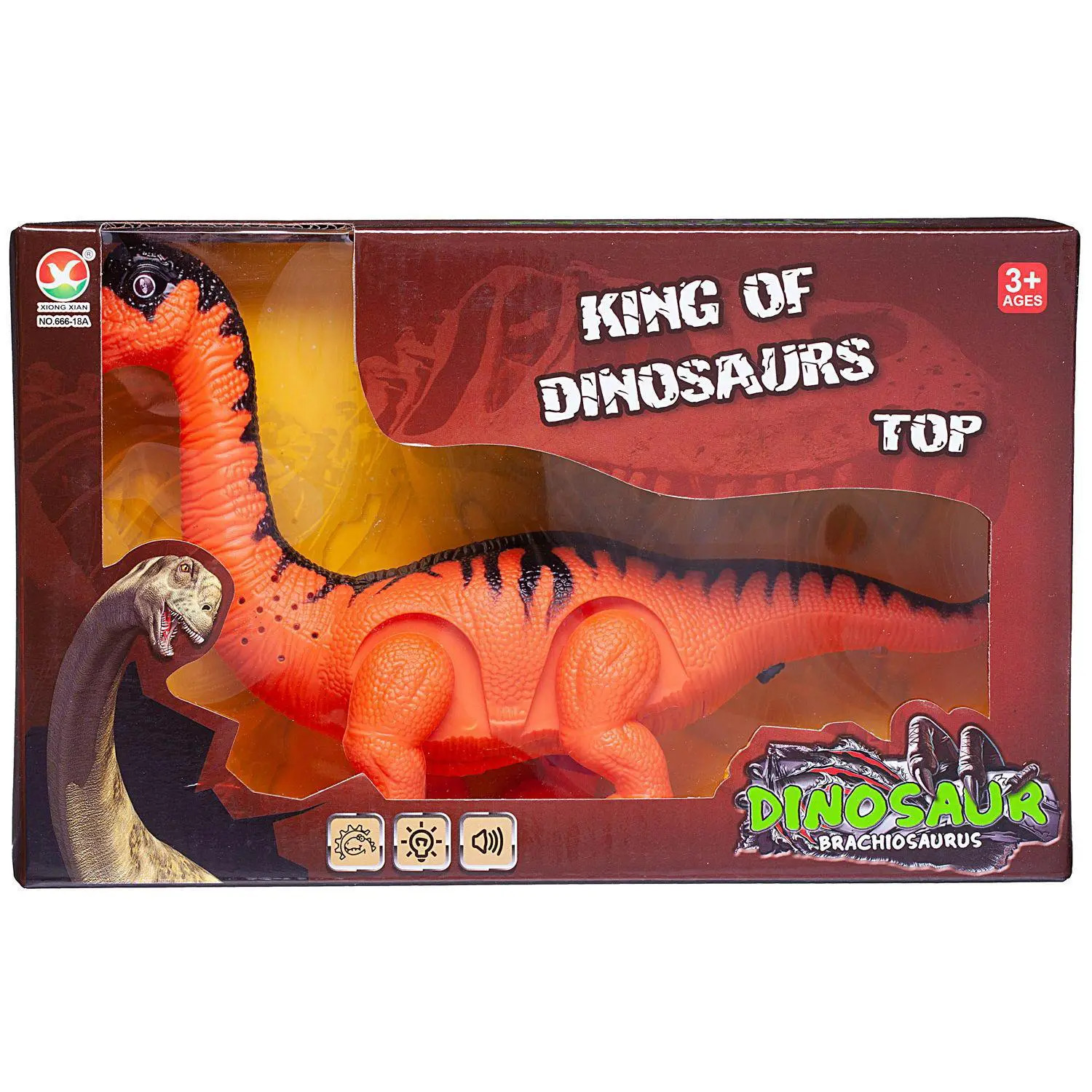 Динозавр Junfa Брахиозавр, оранжевый, электромеханический, свет, звук