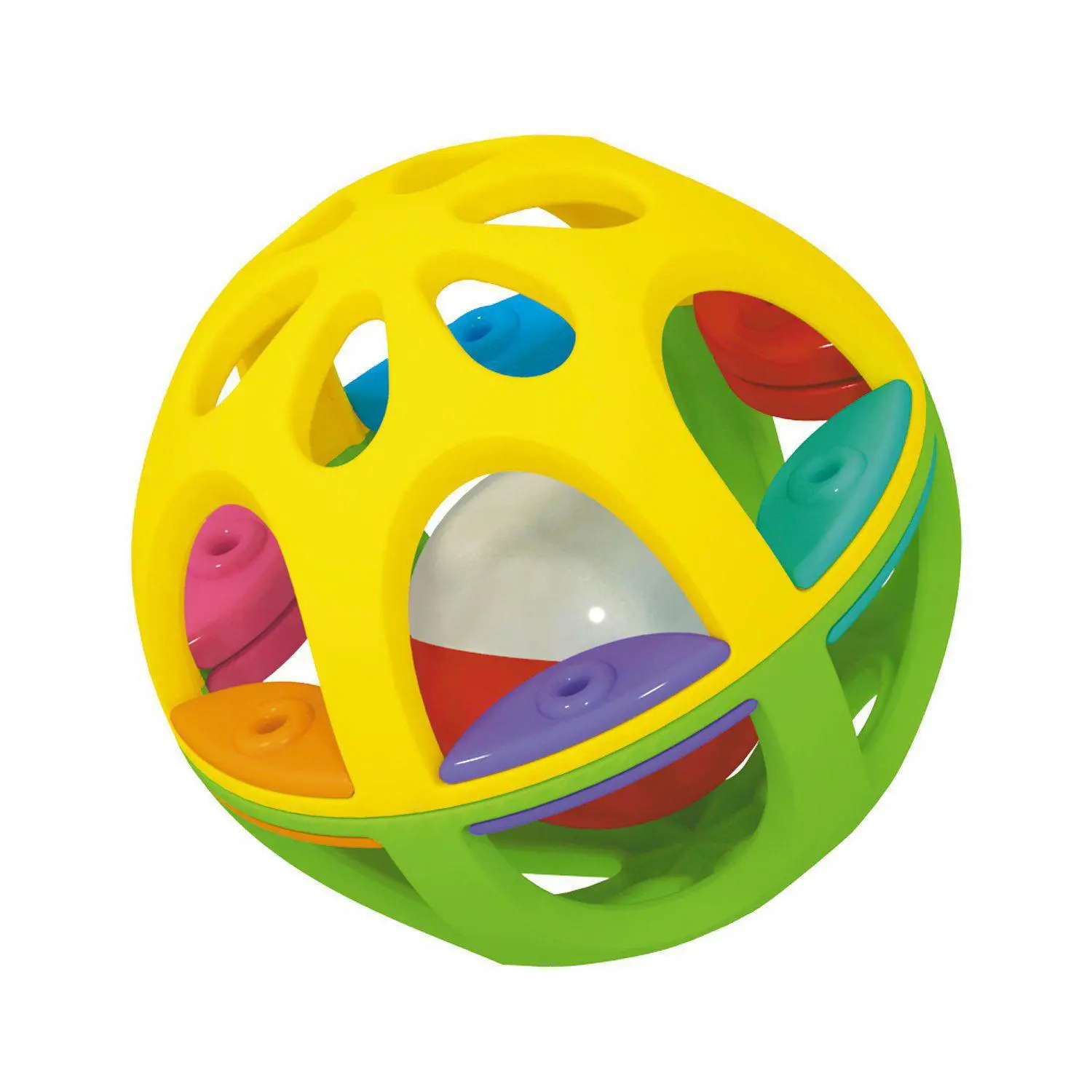 Яркая погремушка-прорезыватель «Шарик» выполнена в виде мягкой сферы с фигурными отверстиями. Внутри этой сферы находится шарик. При перекатывании или потряхивании игрушка издаёт приятные звуки. Погремушка изготовлена из высококачественных материалов и приятна для осязания. При сжатии, благодаря мягкой структуре шар всегда возвращается в форму идеальной сферы, что непременно понравится малышам.Погремушку-прорезыватель можно не только кусать и сжимать, но также перекатывать. Толкнув шарик, чтобы он откатился от малыша, можно стимулировать желание ребенка дотянуться или доползти до игрушки. Шар очень удобен для удержания детскими ручками, так как имеет фигурные отверстия, идеально подходящие для маленьких пальчиков. Погремушка-прорезыватель «Шарик» станет самой любимой игрушкой и будет радовать малышей каждый день!