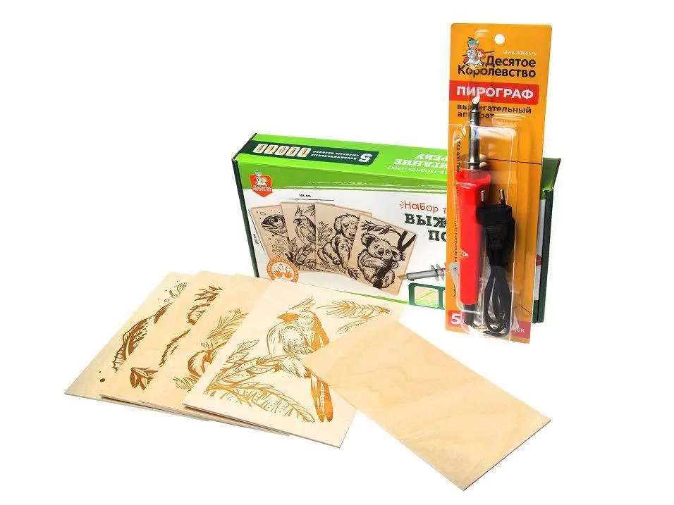 Набор для творчества Десятое королевство Выжигание по дереву аппарат с насадками, доски 5 шт