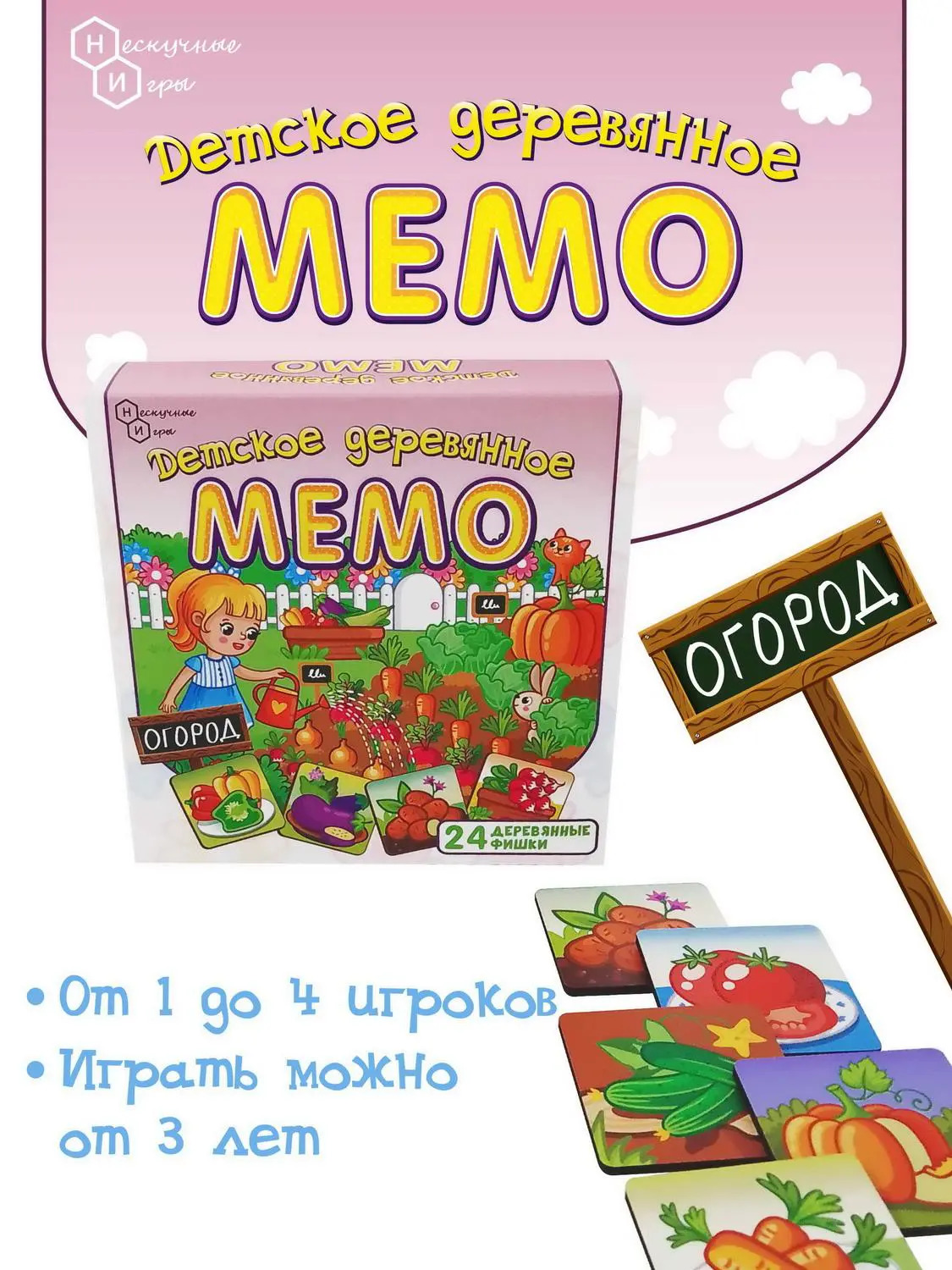 Настольная игра Нескучные игры Мемо Огород 24 деревянные фишки