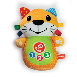 Необычный телефончик для самых маленьких – в виде мягкой музыкальной игрушки. Нажимая на телефонную трубку на животике котика, малыш сможет позвонить ему, а котик ему обязательно ответит и поговорит, и даже споет веселые песенки. При нажатии на носик котик будет забавно пищать. Всего в игрушке 15 песенок, мелодий и звуков.Игры с котиком из серии «Телефончик малыша» прекрасно развивают воображение и слуховое восприятие. А тактильные элементы игрушки – шуршащие ушки и яркие ленточки на голове – помогут в развитии мелкой моторики.