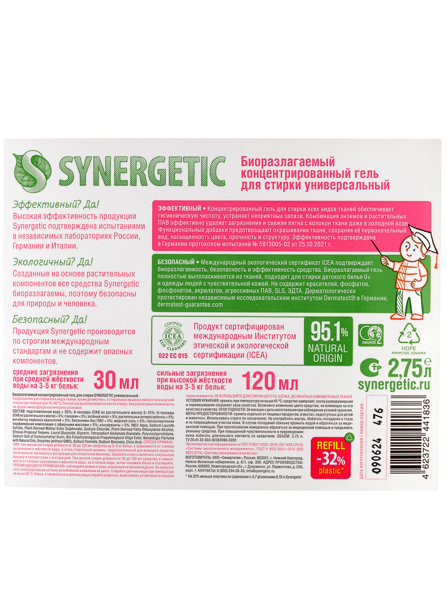SYNERGETIC Гель для стирки Универсальный 2,75л