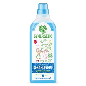 Сейчас объясним, к чему это мы. Средство для стирки обеспечивает чистоту, но именно кондиционер незаметно повышает качество жизни каждый день: смягчает ткань, придает аромат свежести, облегчает глажку и дает антистатический эффект. Вспомните ощетинившиеся махровые полотенца, которые стоят колом после высыхания — огрубевшая ткань хуже впитывает влагу и раздражает кожу. Кондиционер SYNERGETIC справляется со своей задачей даже в жесткой воде и заботится о вашем хорошем настроении каждый день.