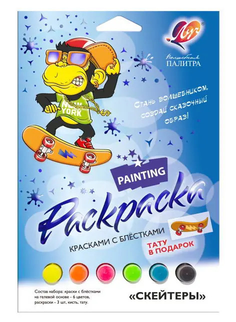 Набор красок ЛУЧ с блестками с раскрасками Скейтеры
