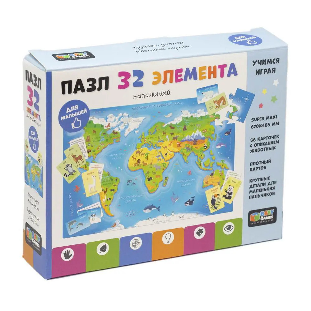 Пазл ORIGAMI BabyGames Карта мира 32 маски элемента, напольный