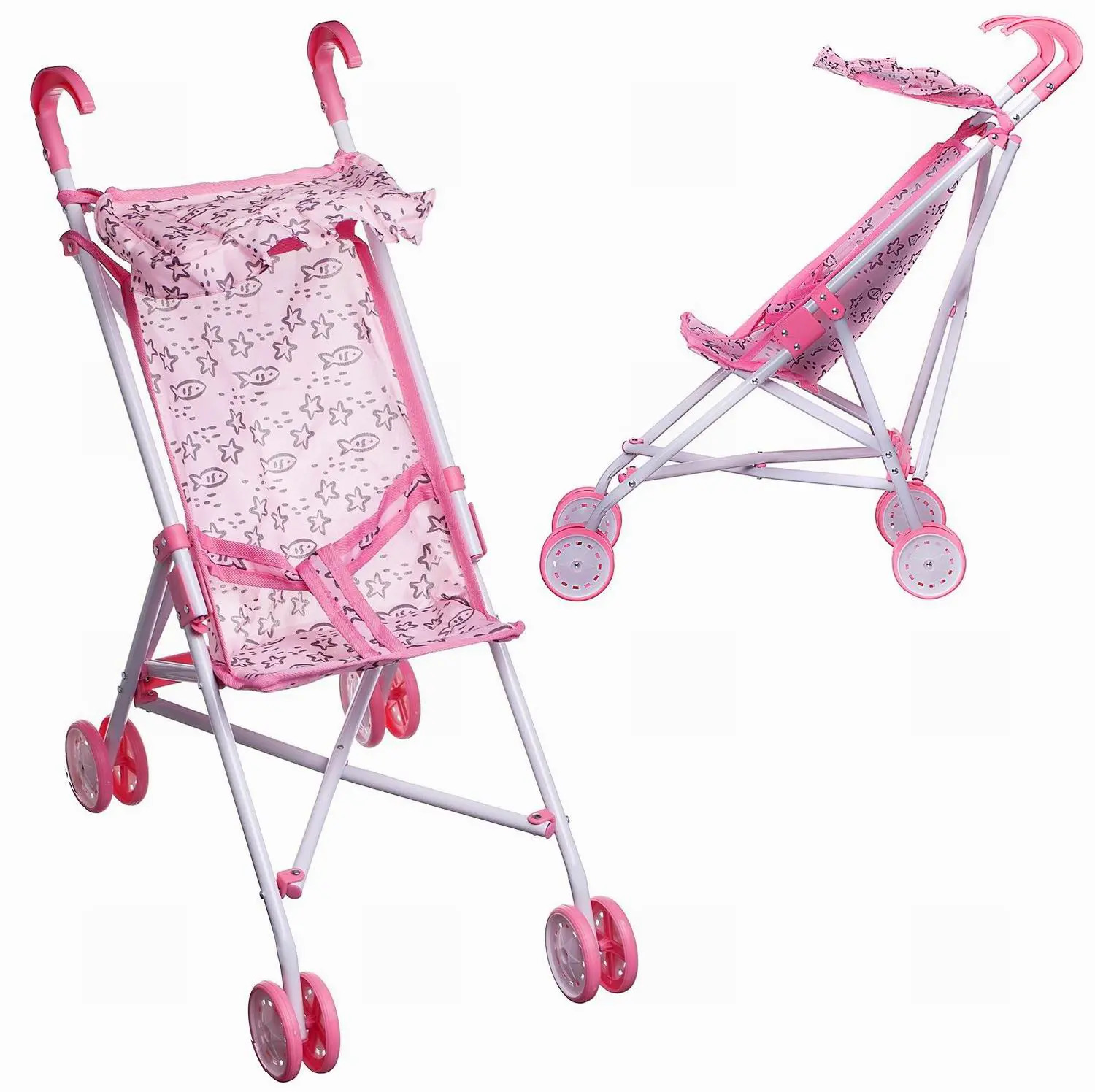 Всесезонная детская коляска-трость для кукол от бренда Abtoys - отличный вариант для игры маленькой девочки в дочки-матери. Она имеет привлекательный дизайн, выполнена в розовом цвете, имеет оригинальный принт в виде симпатичных рыбок. Каркас коляски изготовлен из металла, а ручки и колеса из пластика. Сиденье текстильное. Коляска оснащена складным капюшоном, удобными ручками и устойчивыми колесами, которые обеспечивают легкость хода на прогулке. Коляска легкая, складывается, ее удобно переносить и брать с собой.Характеристики: