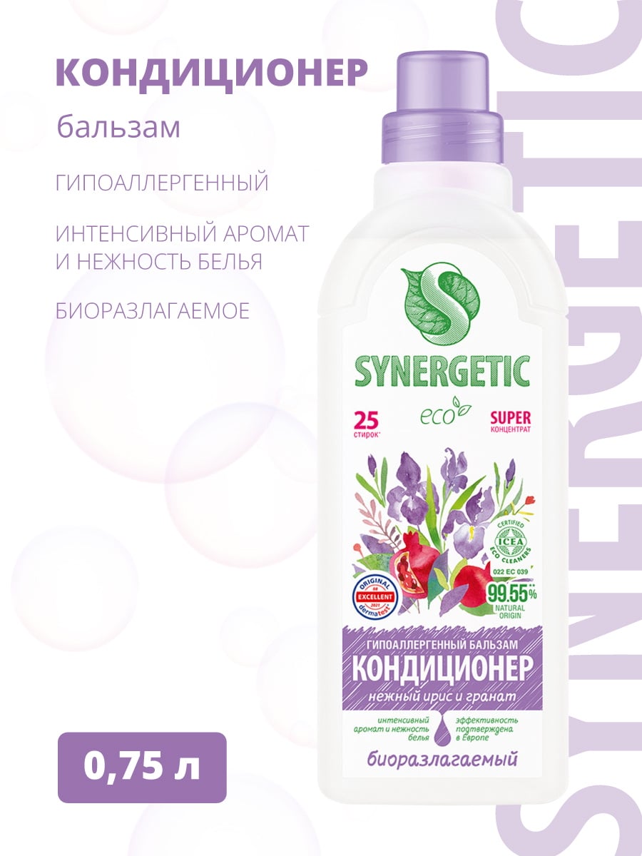 SYNERGETIC Кондиционер для белья Нежный ирис и гранат 0,75л