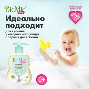 BIO-SOAP BABY, как и остальные средства BioMio®, создано с любовью и заботой о вас, вашем доме и нашей планете. Средства BioMio® НЕ содержат парабены, синтетические ПАВ, триклозан, ЭДТА, красители и отдушки, поэтому абсолютно безопасны для здоровья человека и окружающей среды.
