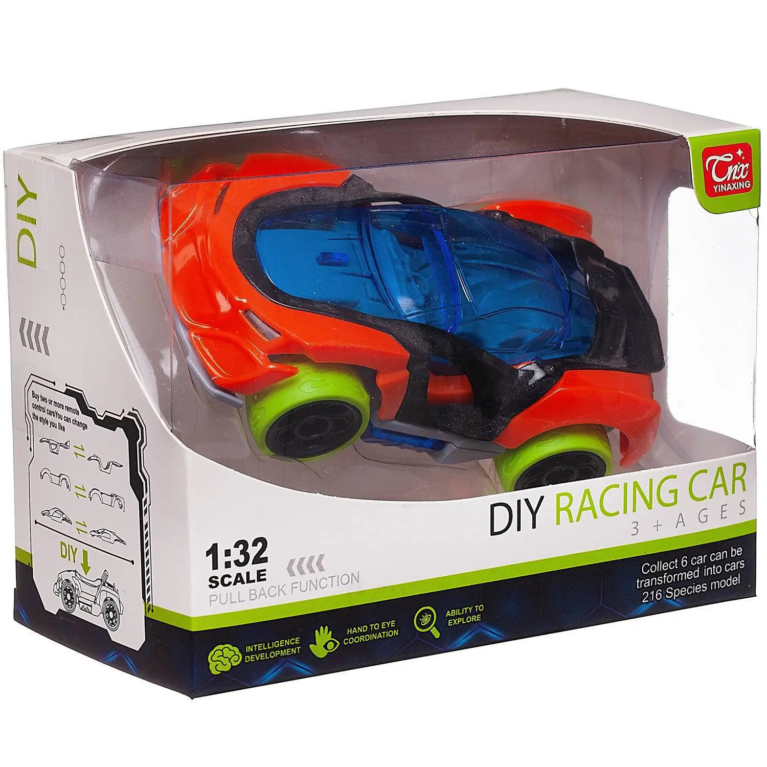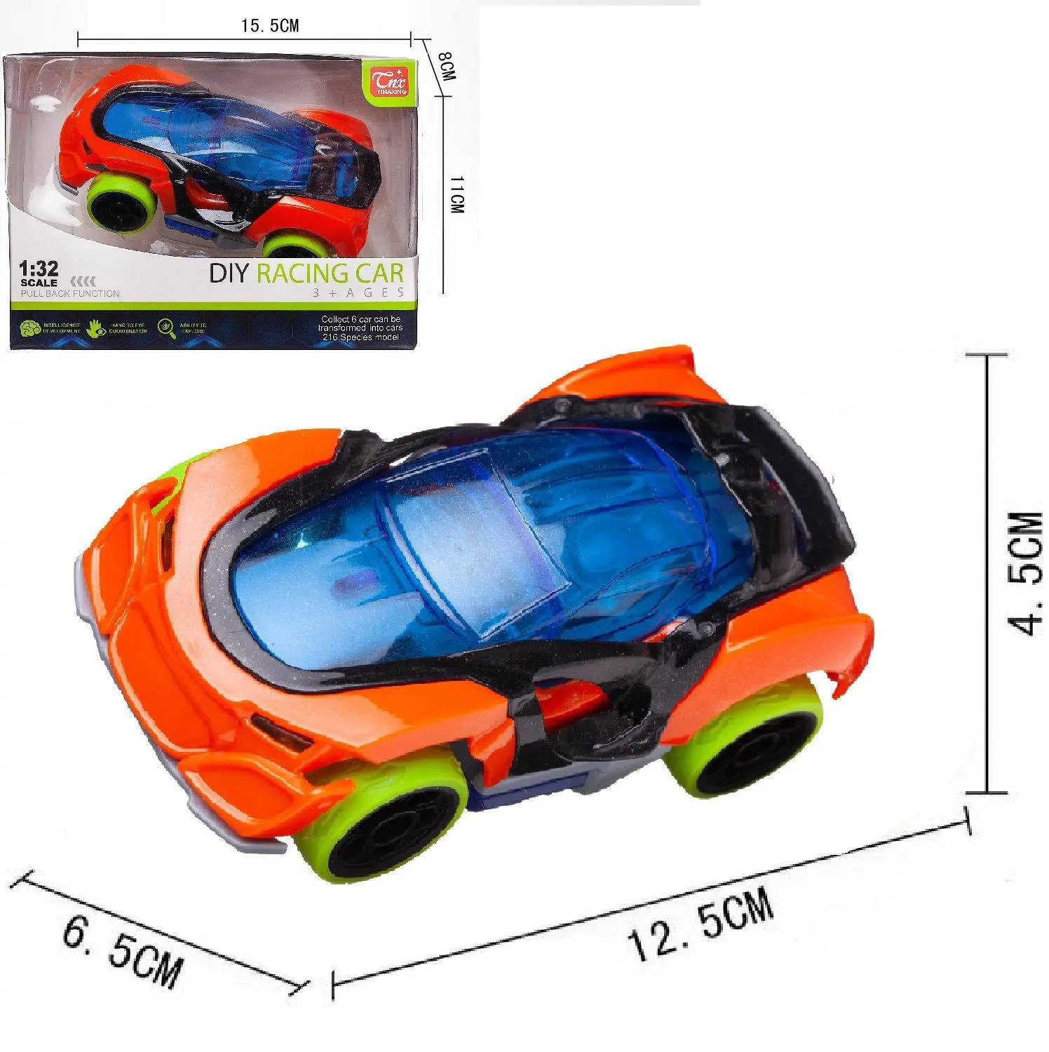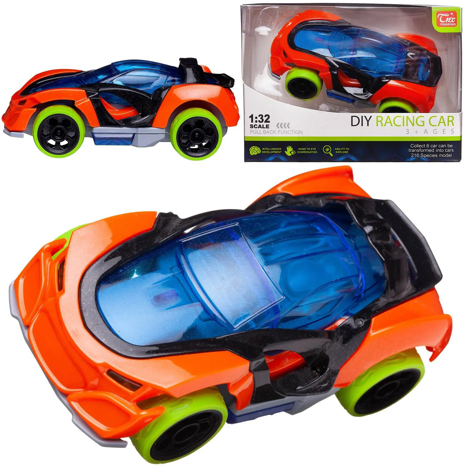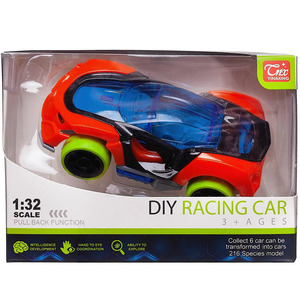 Все мальчишки любят играть с машинками. Ультрасовременная спортивная игрушечная машинка от бренда Junfa сразу привлекает к себе внимание и будет хорошим дополнением коллекции автотранспорта вашего мальчика. Она яркая, детали ее конструкции окрашены в различные цвета. Ее корпус – ярко оранжевого цвета, крыша машинки голубая прозрачная, через нее можно рассмотреть весь салон. Перламутрово-черная вставка обрамляет переднюю часть крыши, выделяет зоны дверей, переходит в задний спойлер. Машинка оснащена инерционным ходом, если ее оттянуть, а затем отпустить, она быстро поедет вперед. Она изготовлена из высококачественной пластмассы, имеет прорезиненные кислотно-зеленые колеса и оптимальный для игры размер. Игра с машинкой обязательно будет интересной и увлекательной.Технологически предусмотрен несложный разбор машинки с помощью крестовой отвертки (в комплект не входит). Возможно разделить машинку на 4 части: крыша, кузов, вставка, основание с колесами. Если приобрести дополнительно аналогичные машинки других цветов (артикула WE-13461 и WE-13463), то возможно комбинирование деталей между ними и создание новых ярких автомоделей.