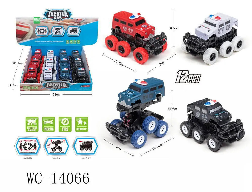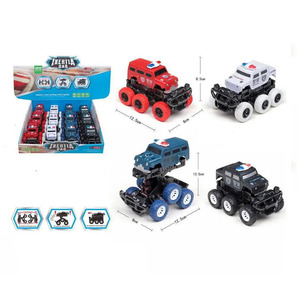Все мальчишки любят играть с машинками. Игрушечная шестиколёсная машинка «Полицейский внедорожник-трансформер» от бренда Junfa сразу привлекает к себе внимание и будет отличным дополнением коллекции автотранспорта вашего мальчика. Машинка имеет тематический окрас, на крыше размещены сигнальные огни, она оснащена 6 большими прорезиненными колесами с рельефным протектором и будет просто незаменимой при проведении специальной полицейской операции в труднопроходимой местности. Мощный передний бампер не только защитит машину от повреждений при столкновении с препятствием, но и продемонстрирует ее уникальную особенность - при нажатии на бампер полицейская машинка трансформируется, поднимая кузов на дополнительную высоту и демонстрируя раннее скрытую от глаз фигурку инопланетянина. Машинка может вращаться на 360 градусов, если ее предварительно разогнать, используя встроенный фрикционный механизм, а затем установить вертикально, бампером вверх. Полицейская машинка изготовлена из высококачественных материалов, благодаря ее необычным характеристикам игра с ней обязательно будет интересной и увлекательной.Игрушка представлена в ассортименте, в четырех цветах.