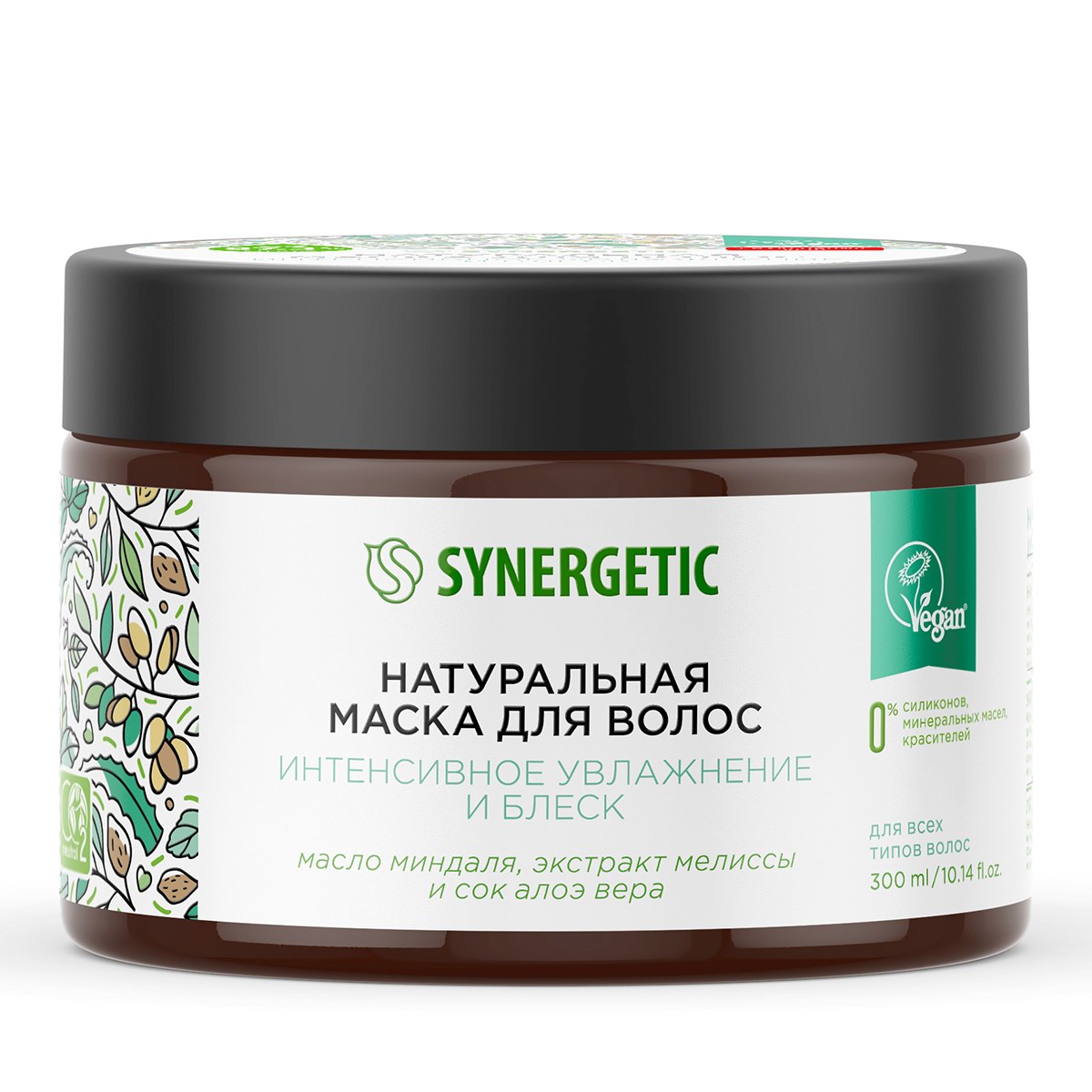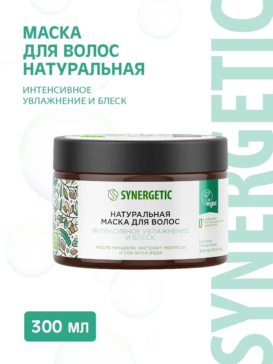 SYNERGETIC Натуральная маска для волос "Интенсивное увлажнение и блеск", банка, 300мл