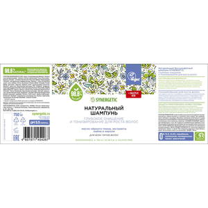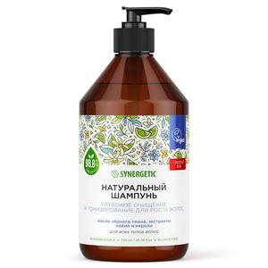 SYNERGETIC Натуральный шампунь "Глубокое очищение и тонизирование для роста волос", бессульфатный, 750мл