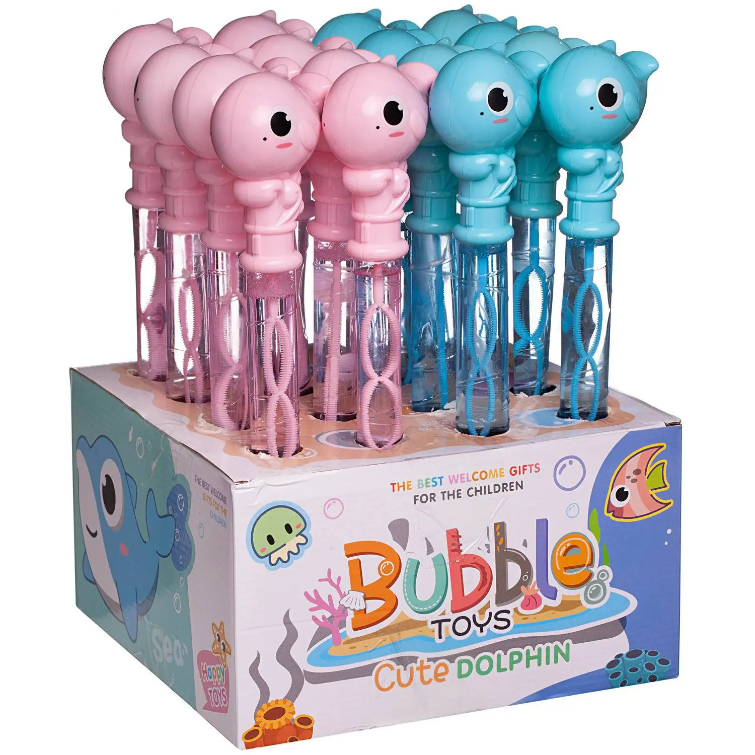 Мыльные пузыри представлены в ассортименте, в голубом или розовом цвете.