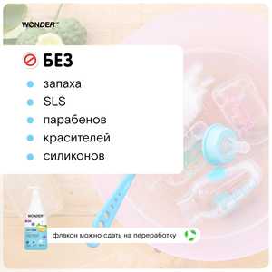 Средство для мытья детской посуды WONDER LAB разработано специально для устранения типичных загрязнений на детской посуде, на сосках и игрушках. Желеобразный гель эффективно работает и в холодной воде, и в горячей, полностью смывается, не оставляя пленки на поверхности. Средство безопасно для мытья посуды самых маленьких. Теперь можно не волноваться, если ребенок решит сам помыть за собой посуду. Средство не сушит и не раздражает кожу. Средство для детской посуды WONDER LAB - максимально экологичный продукт на всех этапах жизненного цикла, что подтверждает европейский экосертификат 1-го типа Ecolabel.В основе экологичного средства для детей - инновационный компонент Biomicrogel®, который сделан из овощей и фруктов. Благодаря этому компоненту, средства WONDER LAB безопасны для человека, не вредят окружающей среде, не содержат токсичных компонентов и разлагаются на 98% за 1 день.