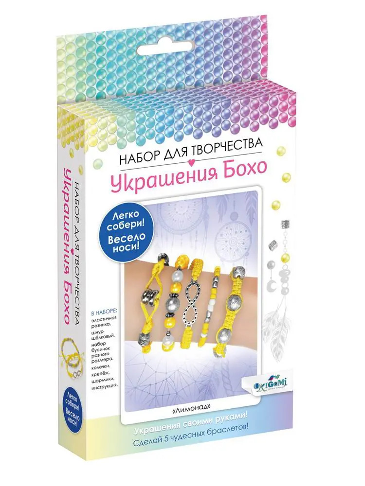 Набор для творчества ORIGAMI Набор для создания украшений Бохо Пять браслетов Лимонад