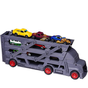 Игры с машинками не только любимое занятие для всех мальчишек, но и важный элемент их взросления. Оригинальный игровой набор от бренда Junfa состоит из вместительного Автовоза-трейлера, который перевозит машинки и фигурки динозавров на трех разноуровневых платформах. Благодаря удобному складному механизму ребенку будет удобно размещать, перевозить, а потом снимать машинки и фигурки с уровней. В задней части трейлера размещена раскладная платформа, которая трансформируется в дополнительный участок трассы со встроенной катапультой. Для запуска машинки установите ее в задней части этой платформы, зафиксируйте до упора, оттянув назад, нажмите на кнопку и наблюдайте как она проедет через весь трейлер и выедет из его кабины. Маленькие машинки, входящие в состав этого набора, имеют оригинальный дизайн, в их корпус интегрированы прозрачные детали, которые делают их уникальными, необычными. Кузов у машинок изготовлен из металла, остальные детали - из пластмассы. Дополняют набор игровое поле с петляющей трассой, на котором ребенок расставит дорожные знаки и будет играть с маленькими машинками. Многоуровневый автовоз-трейлер, дополняющие его многочисленные игровые предметы позволят ребенку придумать множество увлекательных сюжетов и сделают игру с игровым набором интересной и увлекательной.Размер автовоза-трейлера: 29 х 7 х 10.3 см.