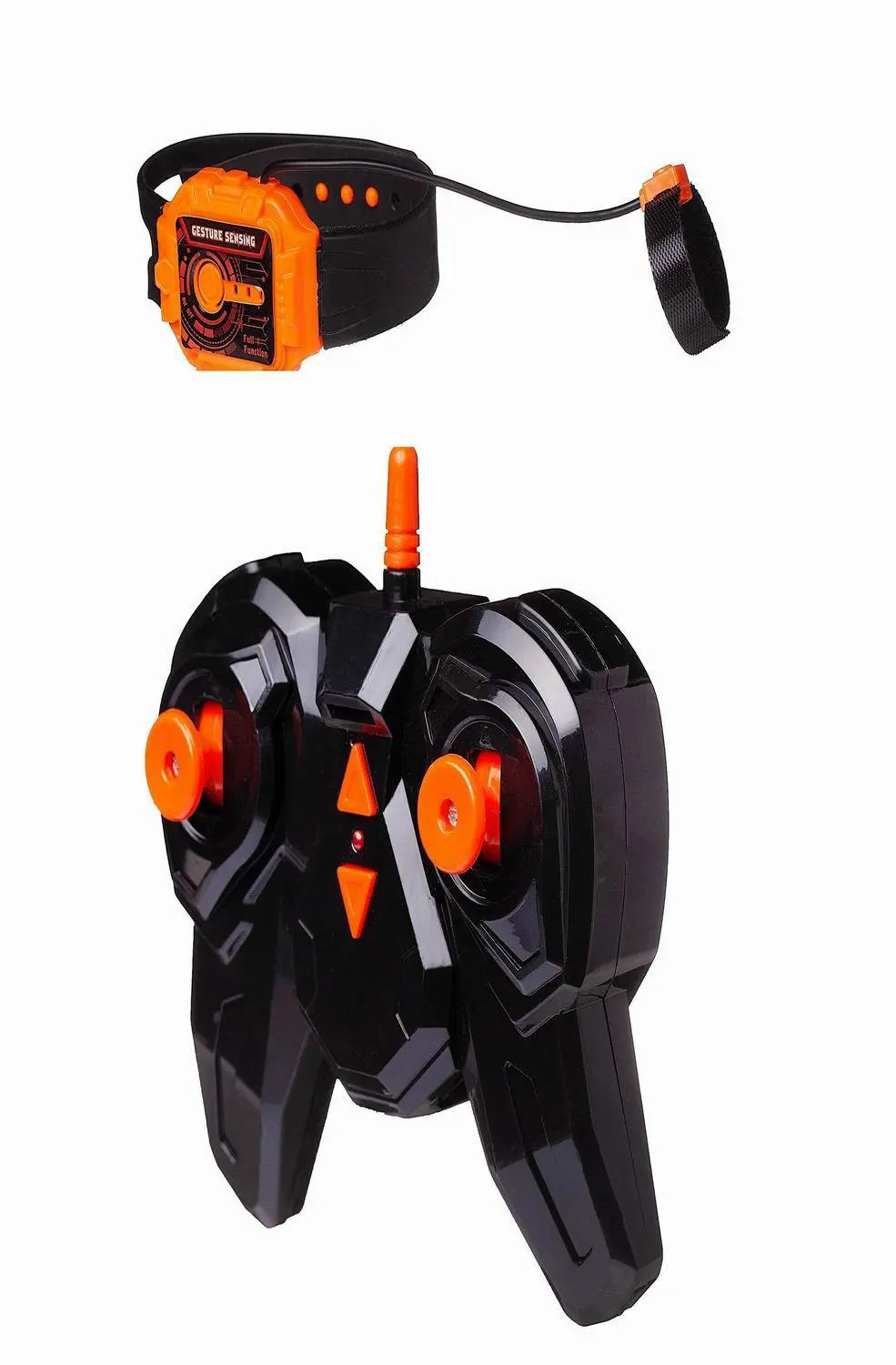 Управление возможно двумя путями: классически пультом и с помощью браслета одеваемого на руку.