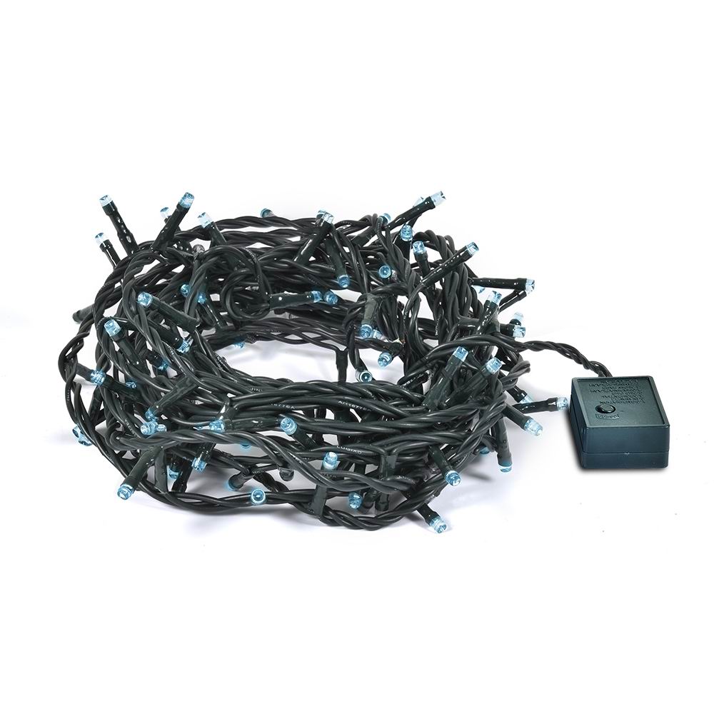 Длина гирлянды 30 м, длина провода 3 м, количество светодиодов 300. Цвет свечения холодный, цвет провода зеленый. Степень защиты IP 20. Мощность 6 W. Гирлянда имеет контроллер (8 режимов работы). Использовать при комнатной температуре. Срок службы 25 000 часов.