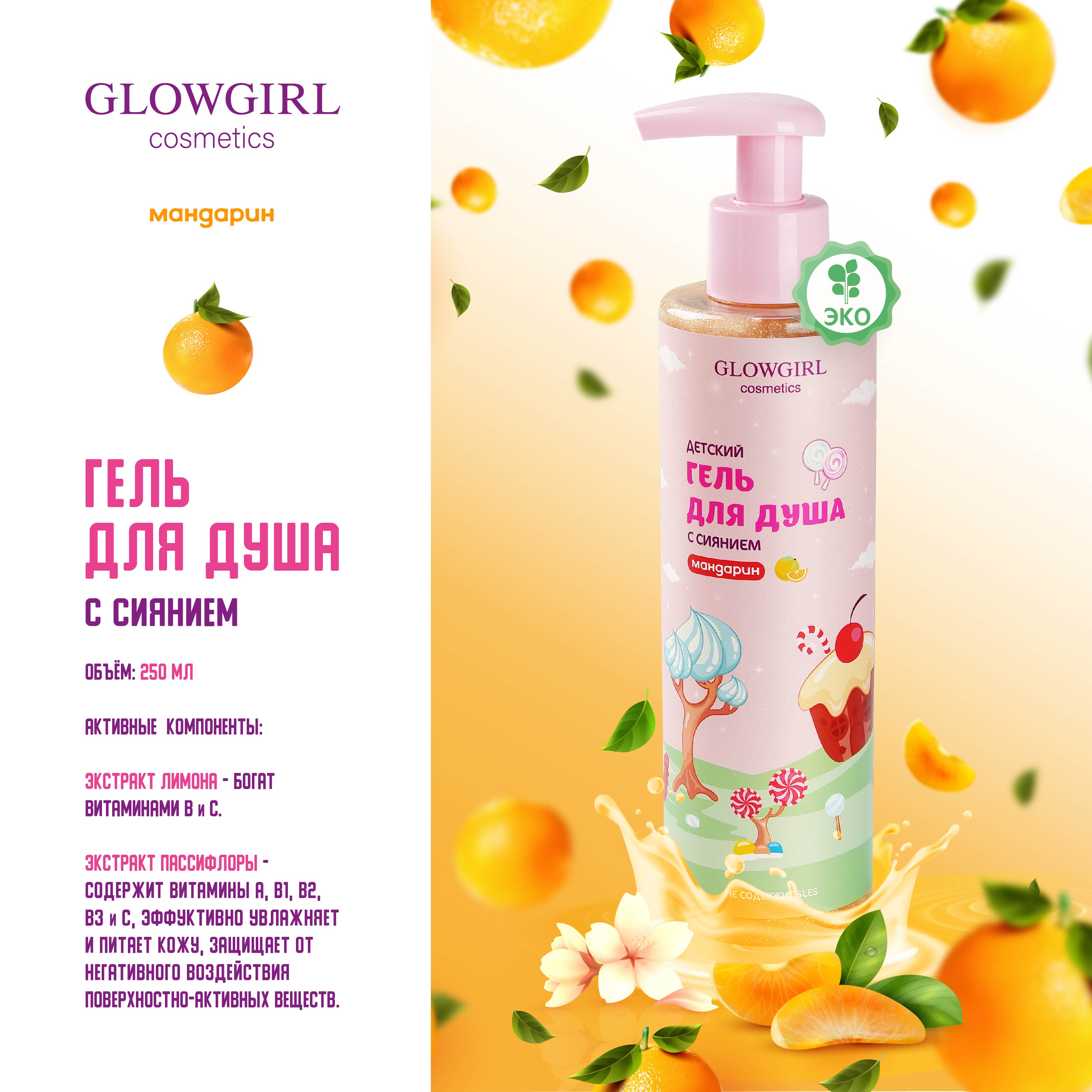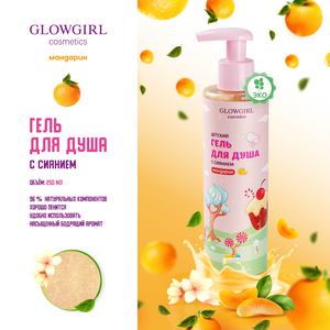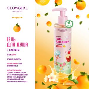 GLG1006 Glowgirl. Гель для душа увлажняющий золотое сияние детский Мандарин, 250мл. Эко продукт.Завораживающая золотая материя и искрящийся аромат сочного мандарина. Это удивительное сочетание подарит заряд бодрости и превратит купание в настоящее летнее приключение.