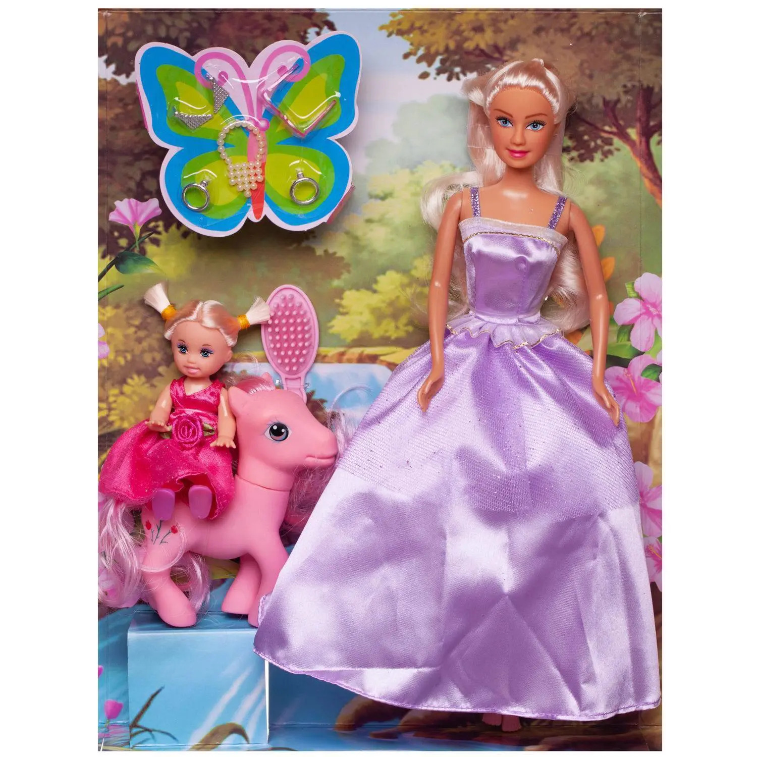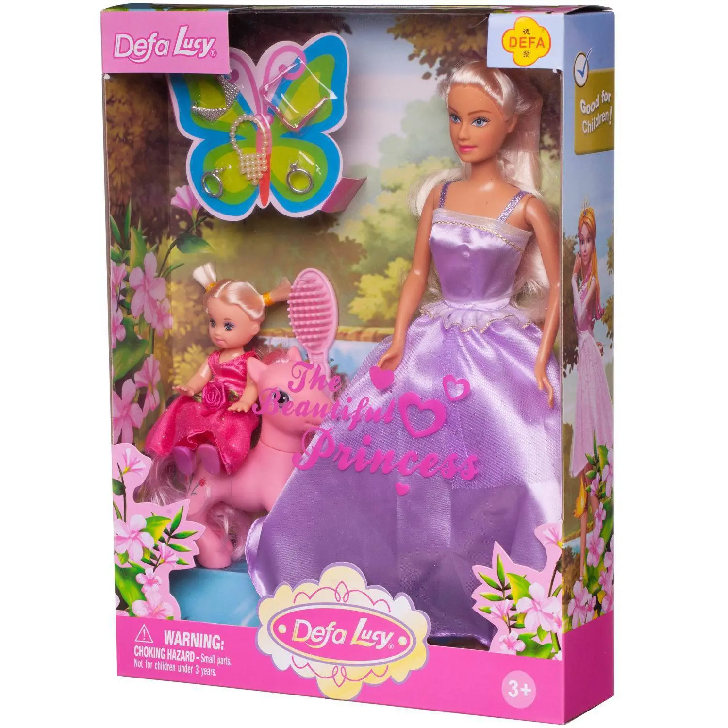Игровой набор Кукла Defa Lucy в фиолетовом платье с куколкой-дочкой на пони, высота кукол 29 и 10 см