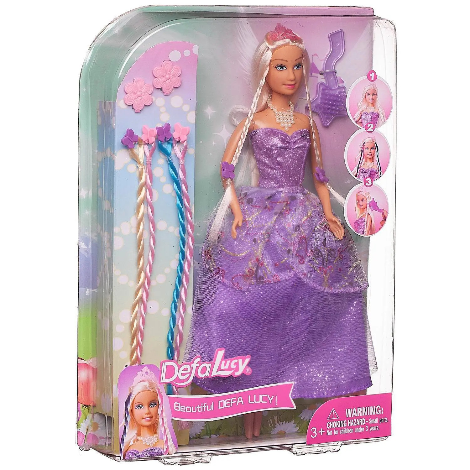 Очаровательная кукла DEFA LUCY с невероятно длинными и яркими волосами непременно понравится любой девочке и завоюет ее любовь с первого взгляда. Кукла одета в длинное платье с пышной юбкой в нежных оттенках. У куклы длинные волосы, которые можно расчесывать и создавать различные прически с помощью аксессуаров в наборе: накладных прядей, расчески, модной заколки и тиары. Шея куклы украшена роскошным ожерельем. Подвижные руки, ноги и голова позволяют придавать кукле разнообразные позы. Игрушка выполнена из качественных и безопасных материалов. Такая кукла будет отличным подарком для девочки!Высота куклы 29 см.
