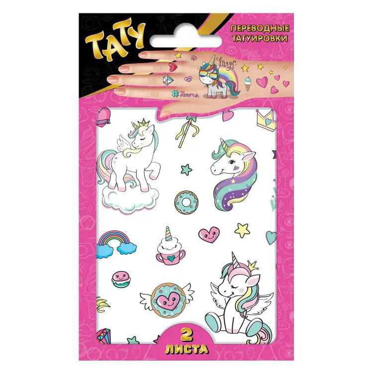 Наклейки-татуировки ND Play Единороги, 2 листа, 10*16,2см