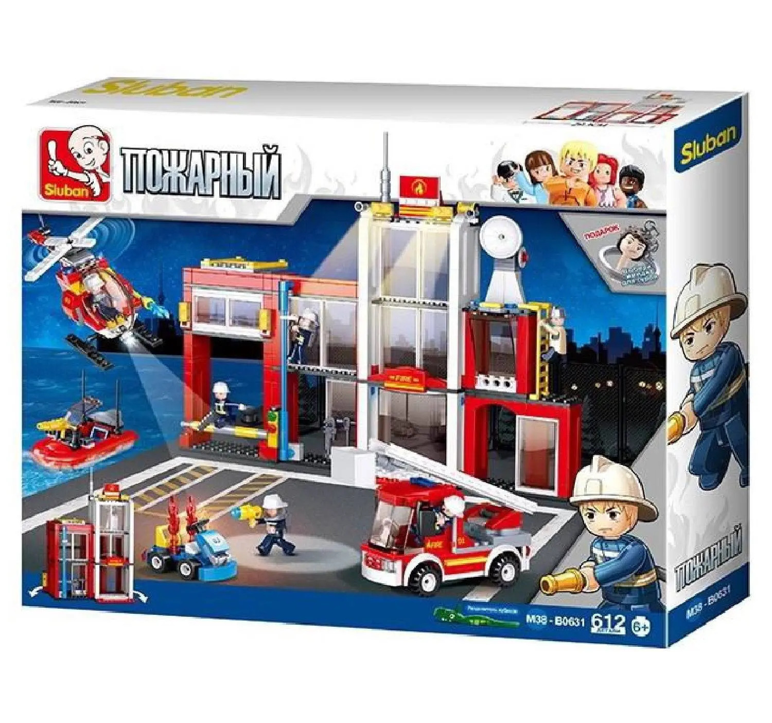 Конструктор Sluban серия Пожарный Пожарная станция 612 деталей