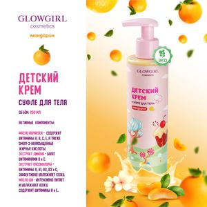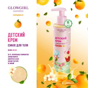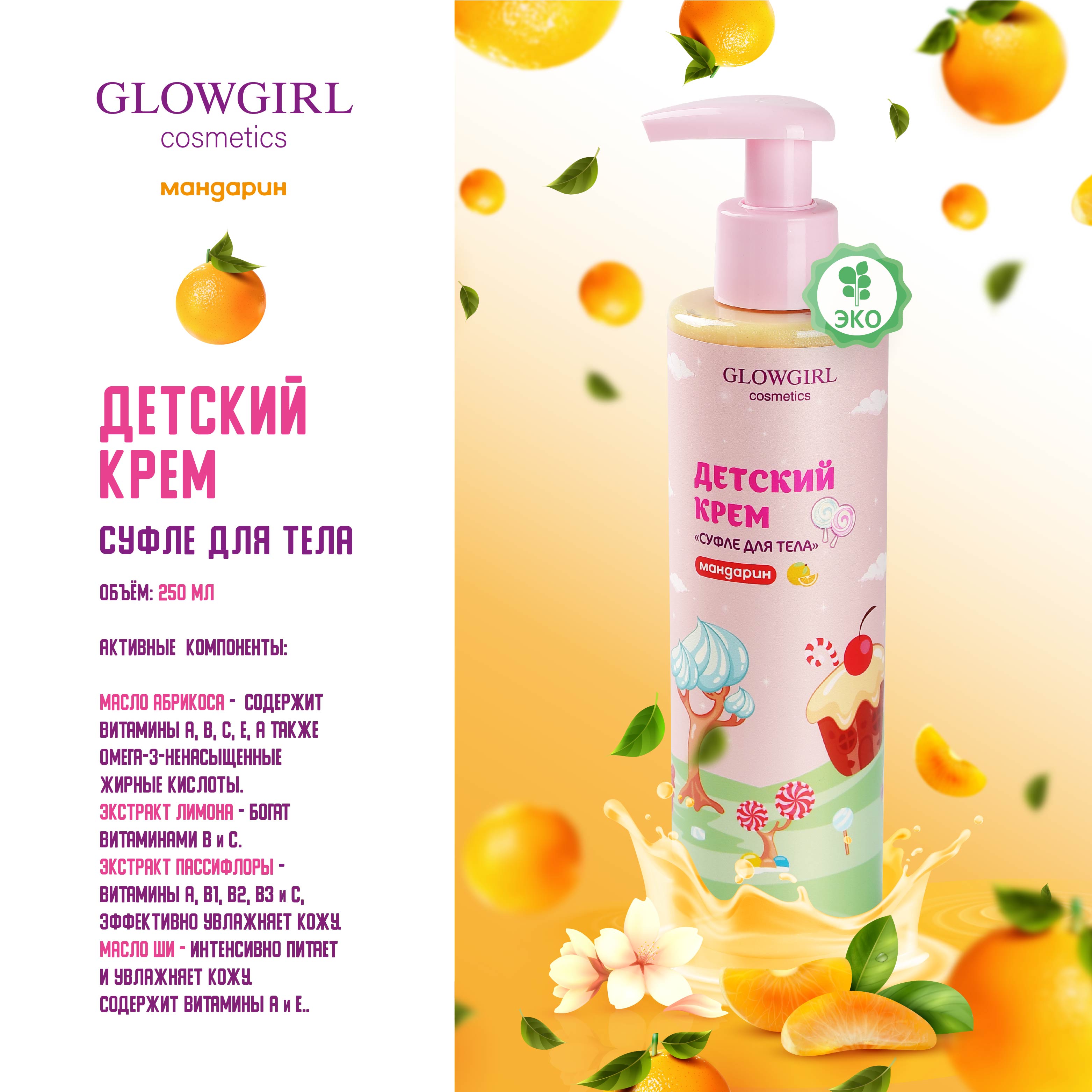 GLG1008 Glowgirl. Крем-суфле для тела с мерцающими частицами детский Мандарин, 250мл. ЭКО продукт.Ароматный «десерт» для тела с нежнейшей бархатистой текстурой и миллионами сверкающих частичек побалует кожу питательными веществами, наполняя пространство вокруг бодрящим ароматом сочного мандарина.