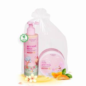 Подарочный набор косметики Glowgirl детский Гель-мусс для тела с эффектом сияния + Крем "Суфле для тела" Мандарин. ЭКО продукт.