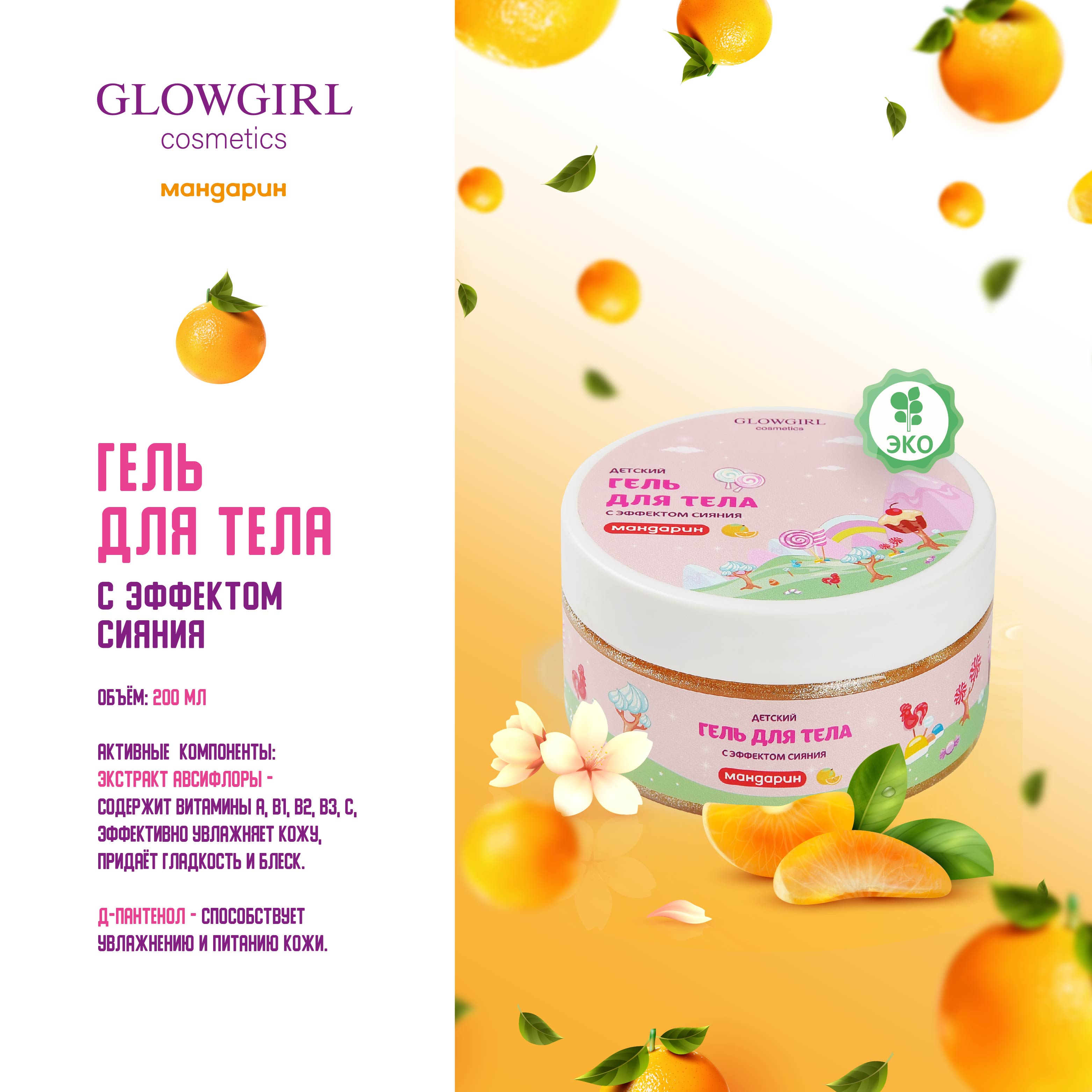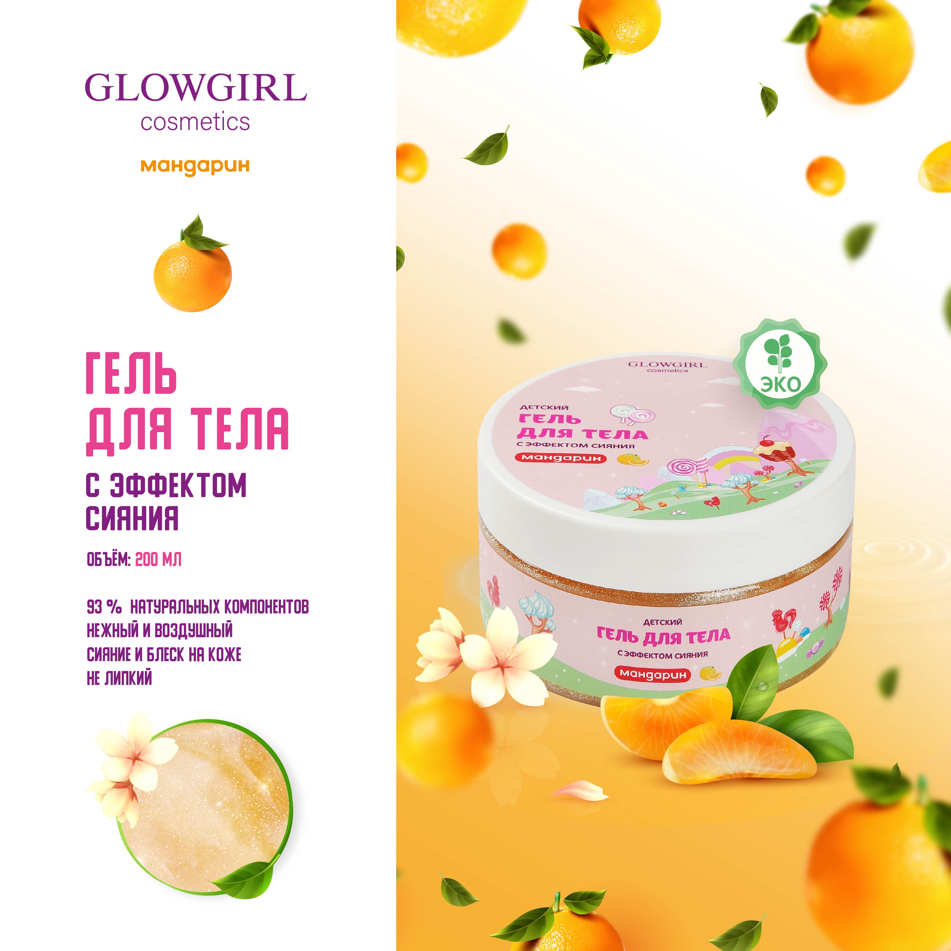 GLG1004 Glowgirl. Гель-мусс для тела с эффектом сияния детский золотой Мандарин, 200мл. ЭКО продукт.