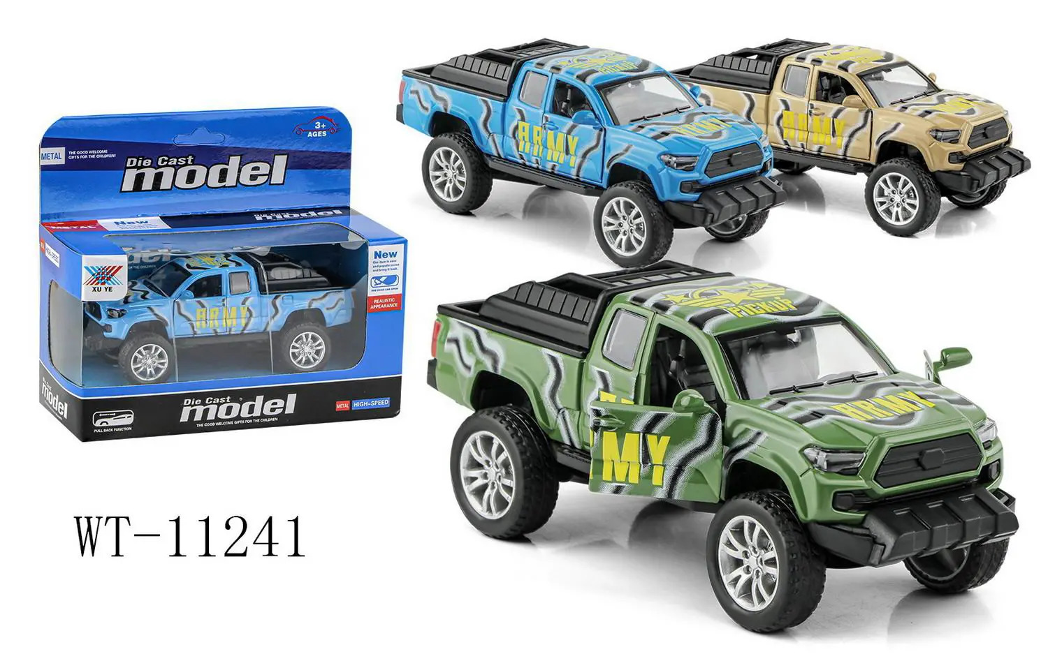 Все мальчишки любят играть с машинками. Игрушечный военный джип-внедорожник от бренда Junfa будет хорошим дополнением коллекции машинок вашего мальчика. Он имеет стилизованную расцветку в стиле милитари, открывающиеся передние дверцы, высокую подвеску, крупные колеса, а защита в зоне переднего убережет машинку в случае непредвиденной игрушечной аварии. Джип оснащен инерционным ходом, если оттянуть машинку назад, а затем отпустить, она быстро поедет вперед. Кузов машинки изготовлен из металла, остальные детали - из пластмассы.Машинка представлена в ассортименте, в трех цветах.