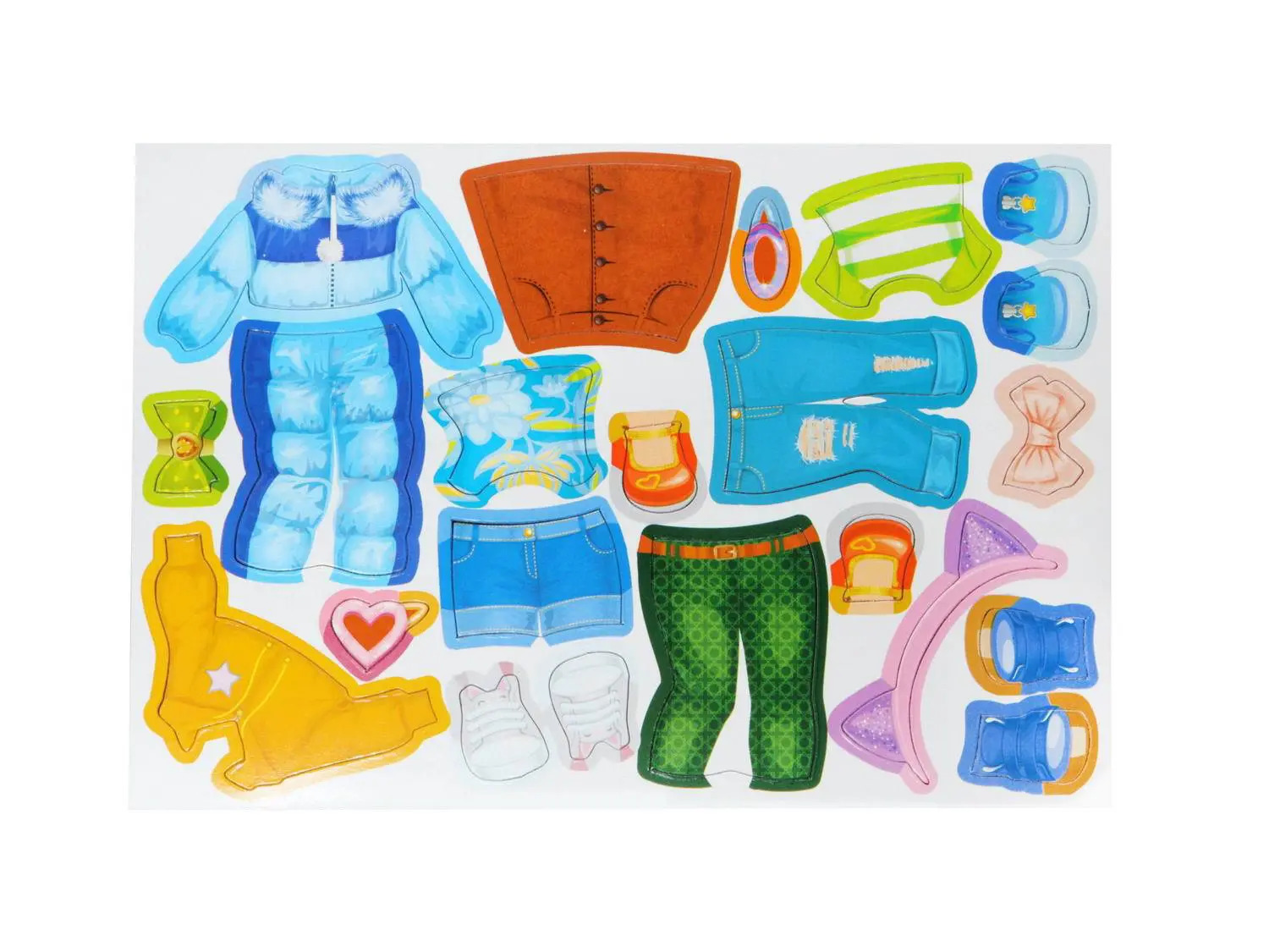 Магнитная игра «Одевашки. Модная девчонка. Анюта» (серия «Магнитные истории»). Состав: фигурка-основа – 1 шт. (18 х 10,5 см), магнитные элементы (одежда) – 37 шт. Материал: картон, полимерный материал, магнитный винил, мягкое железо. Для детей от 3 лет. Развивает фантазию, вкус, чувство стиля, логику, а также учит различать цвета и предметы одежды.