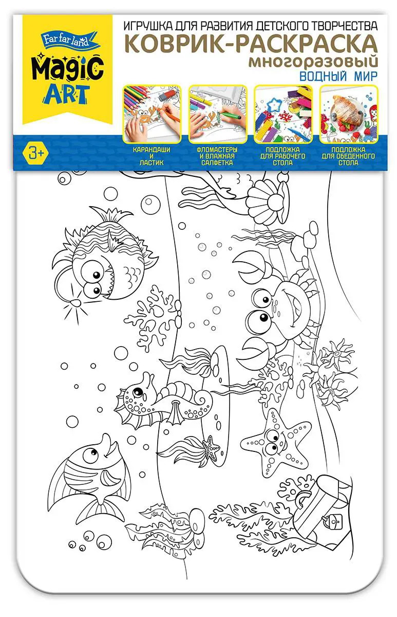 Многоразовый коврик-раскраска "Водный мир". Состав игры: коврик 47,5х34см. Материалы: полимерный материал. Для детей старше 3 лет.
