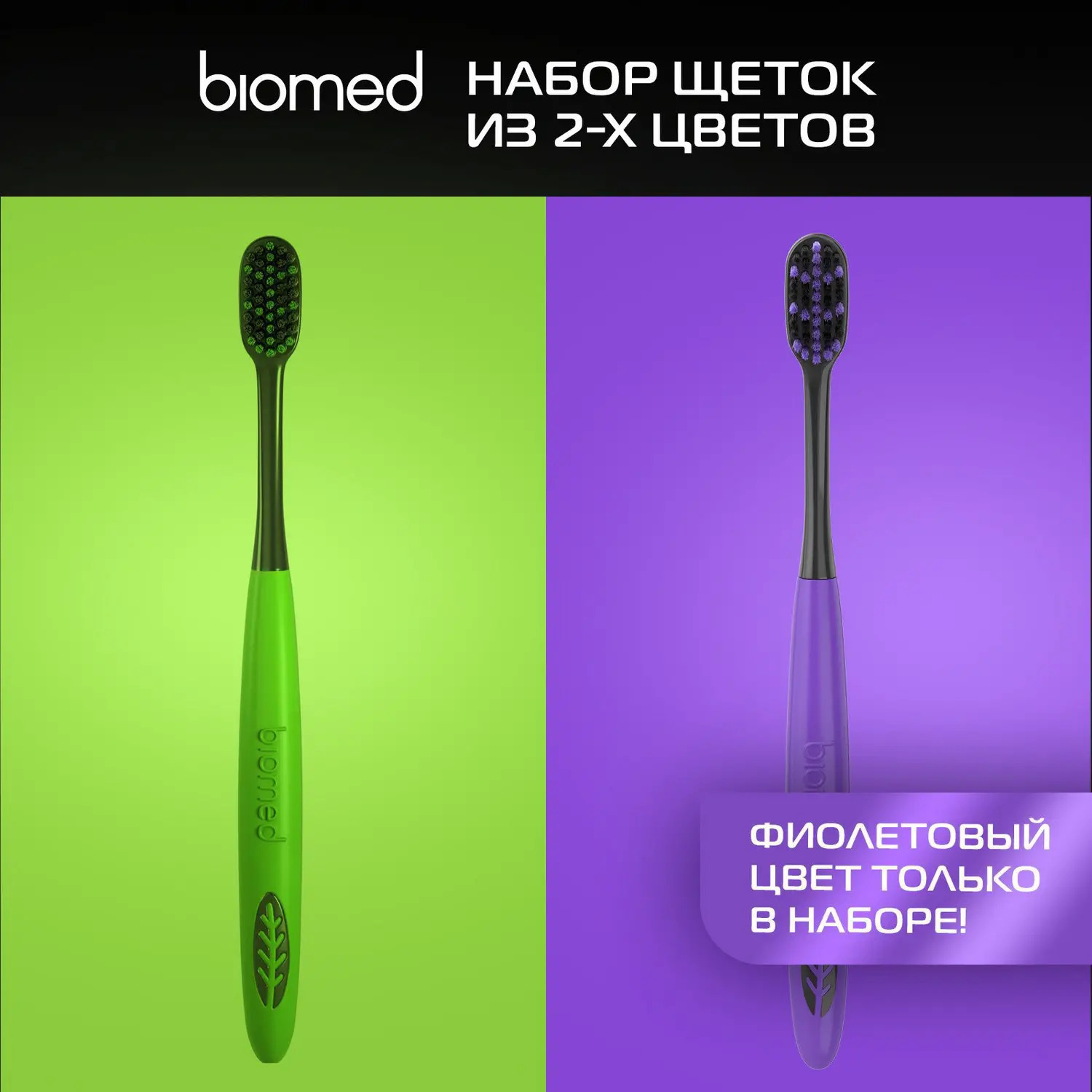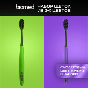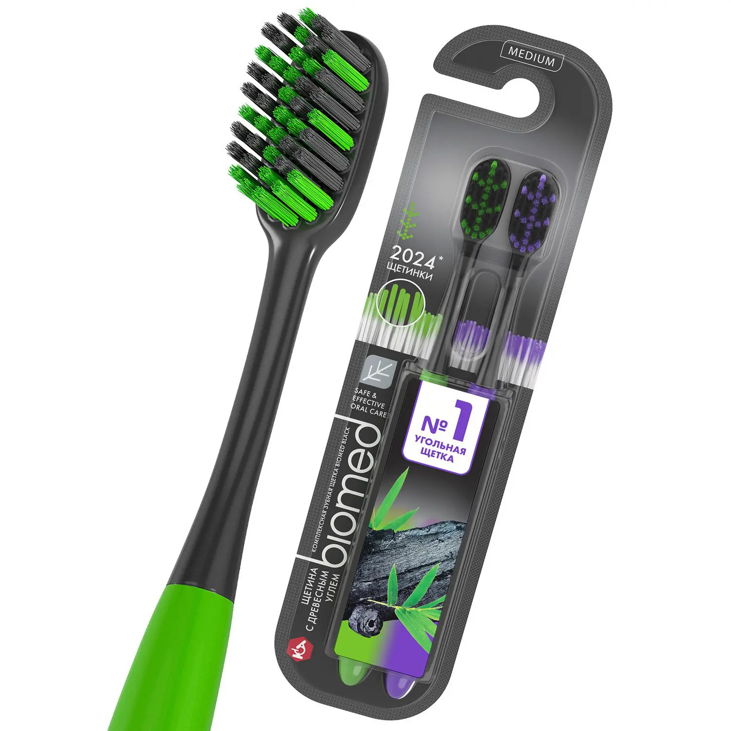 Комплексная зубная щетка BIOMED BLACK,средней жесткости, 2 шт. Зубная щетка средней жесткости BIOMED BLACK с угольным напылением быстро удаляет зубной налет и деликатно отбеливает эмаль. Клинически доказанный эффект очищения за 30 секунд!Древесный уголь на щетине помогает идеально отполировать поверхность зубов. 2024 щетинки имеют особые закругленные кончики, что делает чистку безопасной и атравматичной. Специальная форма головки облегчает доступ к дальним жевательным зубам. Угольная щетка BIOMED BLACK – отличный выбор для комплексного ухода за полостью рта. Состав:Ручка полипропилен, термопластичный эластомер, щетина -полибутилентерефталат.