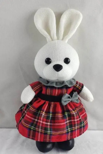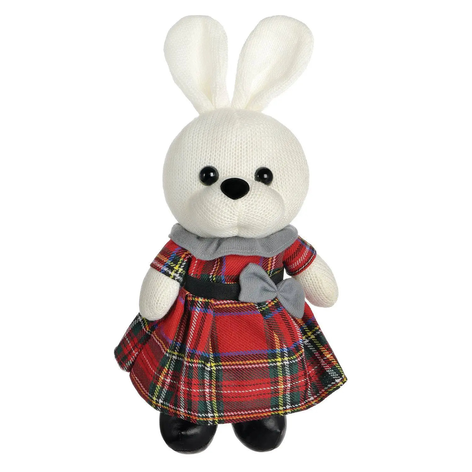 Мягкая игрушка Abtoys Knitted. Зайка вязаный девочка в клетчатом платье 25см