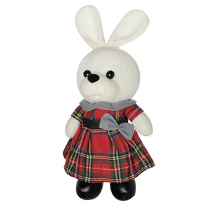 Очаровательная уютная игрушка Зайка-девочка в нарядном клетчатом платьице. Необычный серый воротничок и бантик на поясе придают наряду кокетливости, а туфельки завершают образ. Оригинальная вязаная игрушка наверняка станет любимицей ее маленькой обладательницы, а также стильной деталью в интерьере комнаты.Игрушка выполнена из качественных искусственных материалов, что делает ее безопасной и долговечной в использовании. Не требует специального ухода. Во избежание деформации рекомендуется деликатная стирка.